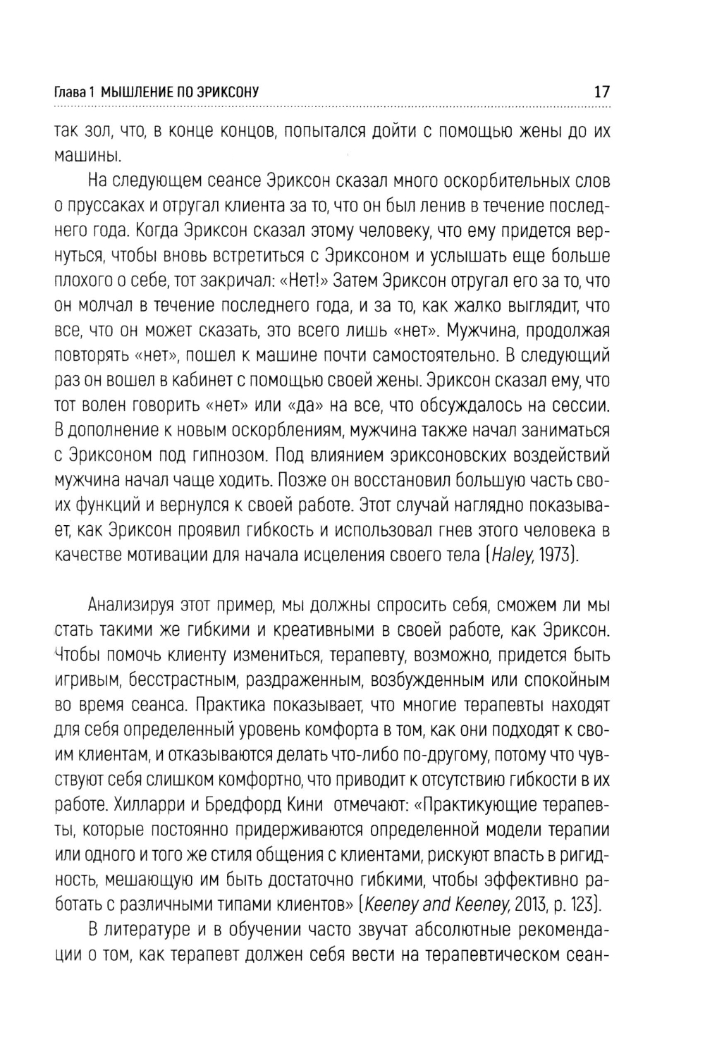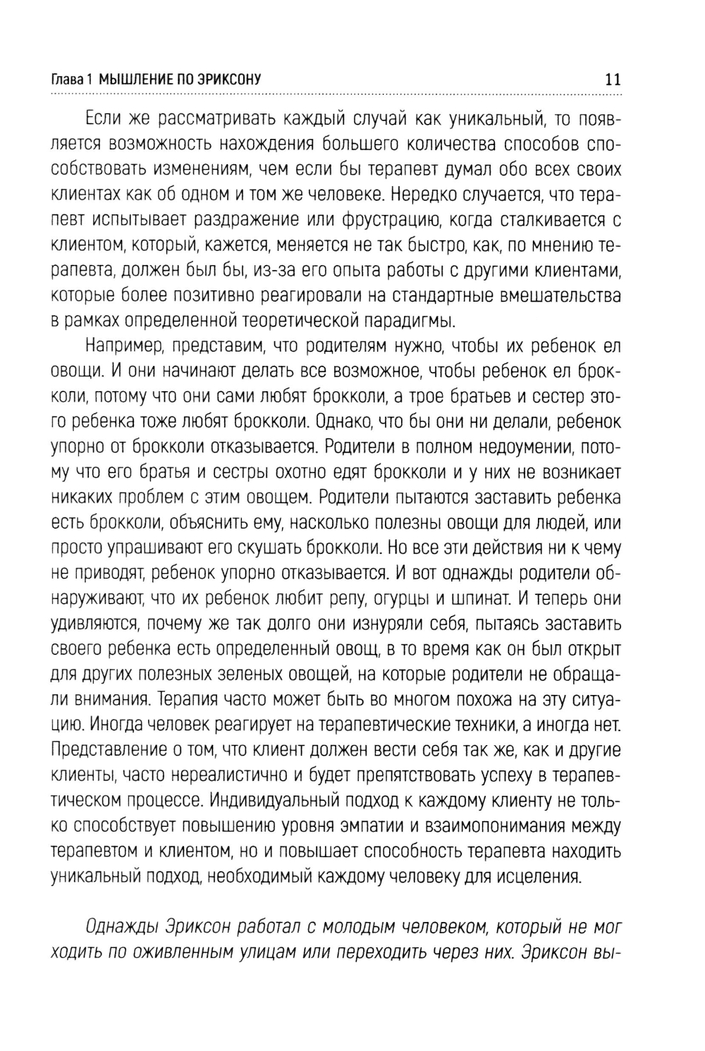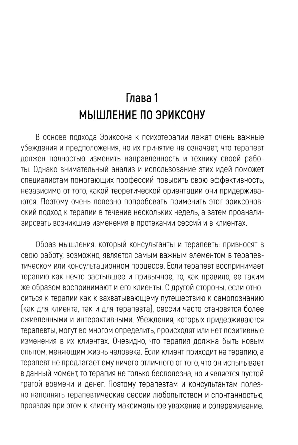 Милтон Эриксон - одна из наиболее интересных и во многом загадочных фигур в истории консультирования и психотерапии, чьи работы легли в основу возникновения различных психотерапевтических направлений, получивших широкое распространение. Однако основная часть информации о работе Эриксона посвящена его удивительным навыкам гипнотерапии - эриксоновскому гипнозу. Но его идеи концепции гораздо шире. Главное, на чем основывался подход Эриксона, заключалось в фундаментальном убеждении, что люди обладают врожденным потенциалом к развитию, который можно и нужно использовать. Автор не призывает никого отказываться от своего личного подхода к психотерапии, равно как и не обесценивает ее другие теоретические направления. Цель этой книги заключается в том, чтобы предоставить консультантам и психотерапевтам информацию, которую они смогут творчески переработать и использовать в своей работе. Поэтому лучше воспринимать эти идеи всего лишь как концепции и метафоры, которые могут предоставить дополнительные интересные и эффективные способы оказания помощи клиентам.| Издательство | Изд.Базенков И.Л. |