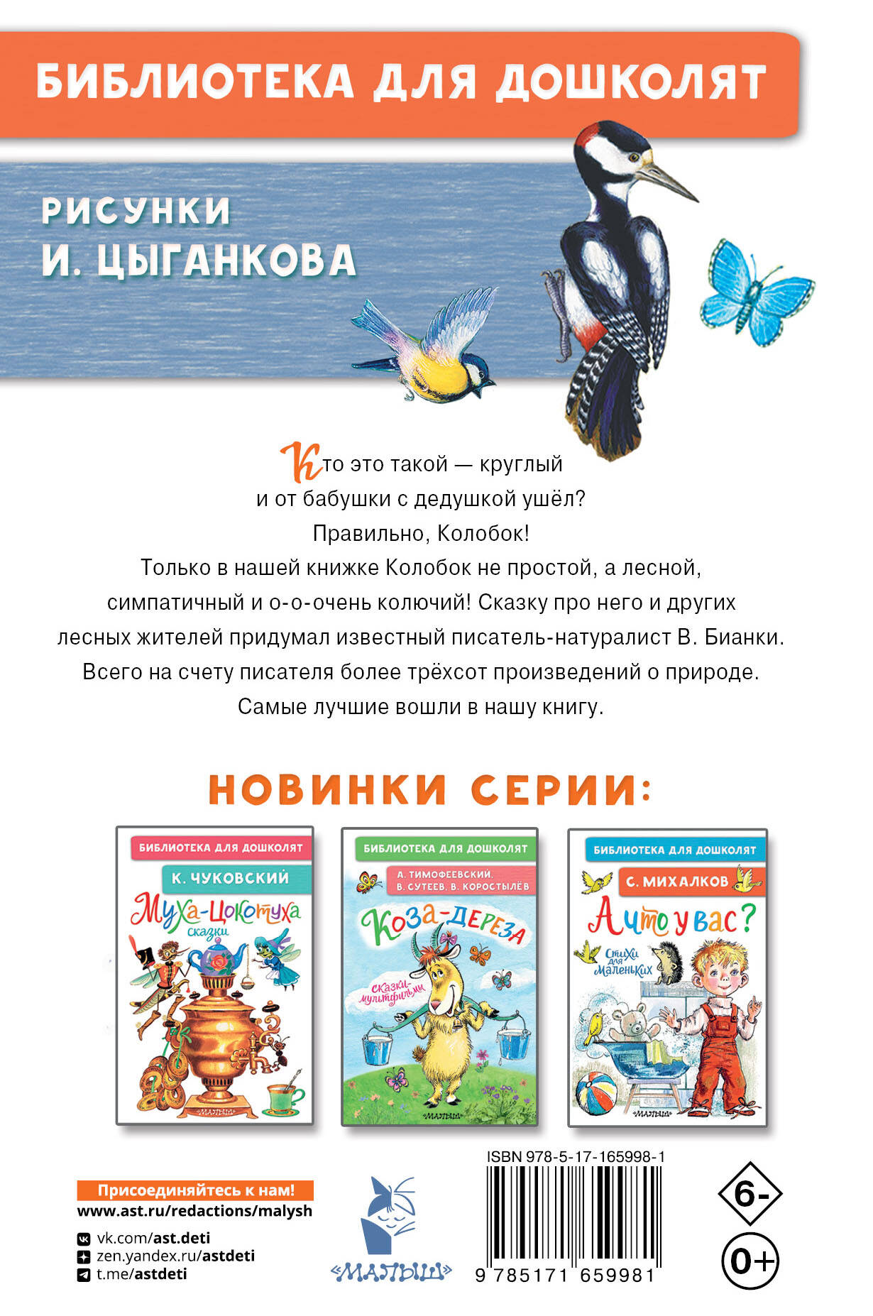 Кто это такой - круглый и от бабушки с дедушкой ушёл? Правильно, Колобок! Только в нашей книжке Колобок не простой, а лесной, симпатичный и о-о-очень колючий! Сказку про него и других лесных жителей написал известный натуралист В. Бианки. Всего на счету писателя более трёхсот произведений о природе. Самые лучшие вошли в нашу книгу.