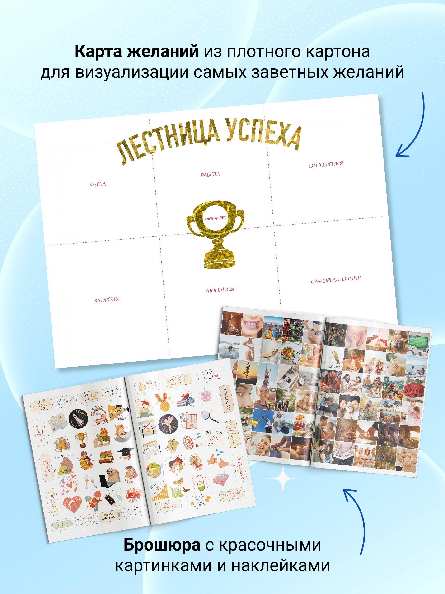Виктор Пономаренко - психиатр, психолог, автор множества публикаций по прикладной психологии, а также ряда оригинальных методик. Один из немногих психологов-практиков, удостоенных за свою работу нескольких государственных наград. Преподает социальную психологию в РАНХиГС при Президенте РФ. "Лестница успеха" - это уникальный психологический инструмент, включающий ваше видение целей и активирующий вас на действия. Когда вы четко видите желаемое, сознание начинает помогать вам, а упражнения в инструкции помогут преодолеть прокрастинацию и выстроить систему своих последовательных шагов на пути к тому, что для вас важно. Внутри вы найдете все необходимое для создания своей идеальной реальности • Карта желаний из плотного картона для визуализации глобальных целей и самых заветных желаний. • Брошюра с красочными картинками и наклейками, которые помогут вам сделать карту яркой и индивидуальной. • Инструкция и упражнения, помогающие проработать цели, проанализировать прогресс и записать свои мысли. • Магнитная карта для фиксации небольших, но важных желаний, ведь волшебство начинается с малого! Для того чтобы притянуть крупные цели, важно исполнить хотя бы одну маленькую мечту. Часто мы забываем о таких простых радостях, как поход в кино, ужин в ресторане или покупка новой одежды, а ведь именно они наполняют жизнь яркими красками и дают ощущение, что мечты сбываются. Записывайте их на магнитной карте, вычеркивайте по мере исполнения и чувствуйте магию каждого прожитого дня! • Два цветных маркера для записи.| Издательство | Издательство "АСТ" |