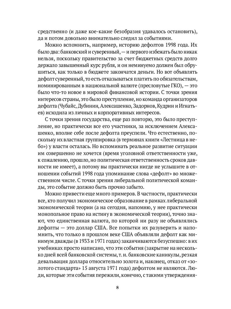 Комплект состоит из двух книг М. Хазина и С. Щеглова «Лестница в небо» и «Черный лебедь мирового кризиса». О книге «Лестница в небо»: Власть не дают, власть берут - сколько раз Вы слышали эти слова, и сколько раз повторяли сами, не задумываясь об их смысле. А между тем, насильственный захват власти в любой стране является тягчайшим преступлением, и попытки «взять власть» заканчиваются не на троне, а на эшафоте. Как же так получилось, что расхожим мнением о Власти стала реклама преступного и тупикового пути к ней, и как на самом деле обычные люди становятся людьми Власти? В своей книге Хазин и Щеглов предлагают читателю совершенно новую трактовку сущности Власти, ее основные категории и правила, главным из которых всегда было и остается «Молчание - золото!». Книга «Черный лебедь мирового кризиса» является хроникой развития кризиса, который мировая экономика переживает уже около десяти лет. Автор, известный российский экономист и политолог, основоположник теории неоэкономики, Михаил Хазин, предсказал вероятность возникновения кризиса еще в те далекие годы, когда мало кто верил в такую возможность. Читателю предлагается проследить развитие политэкономических процессов в наиболее влиятельных странах мира и взглянуть на события 2002-2007 годов глазами очевидца.| Издательство | Рипол Классик |