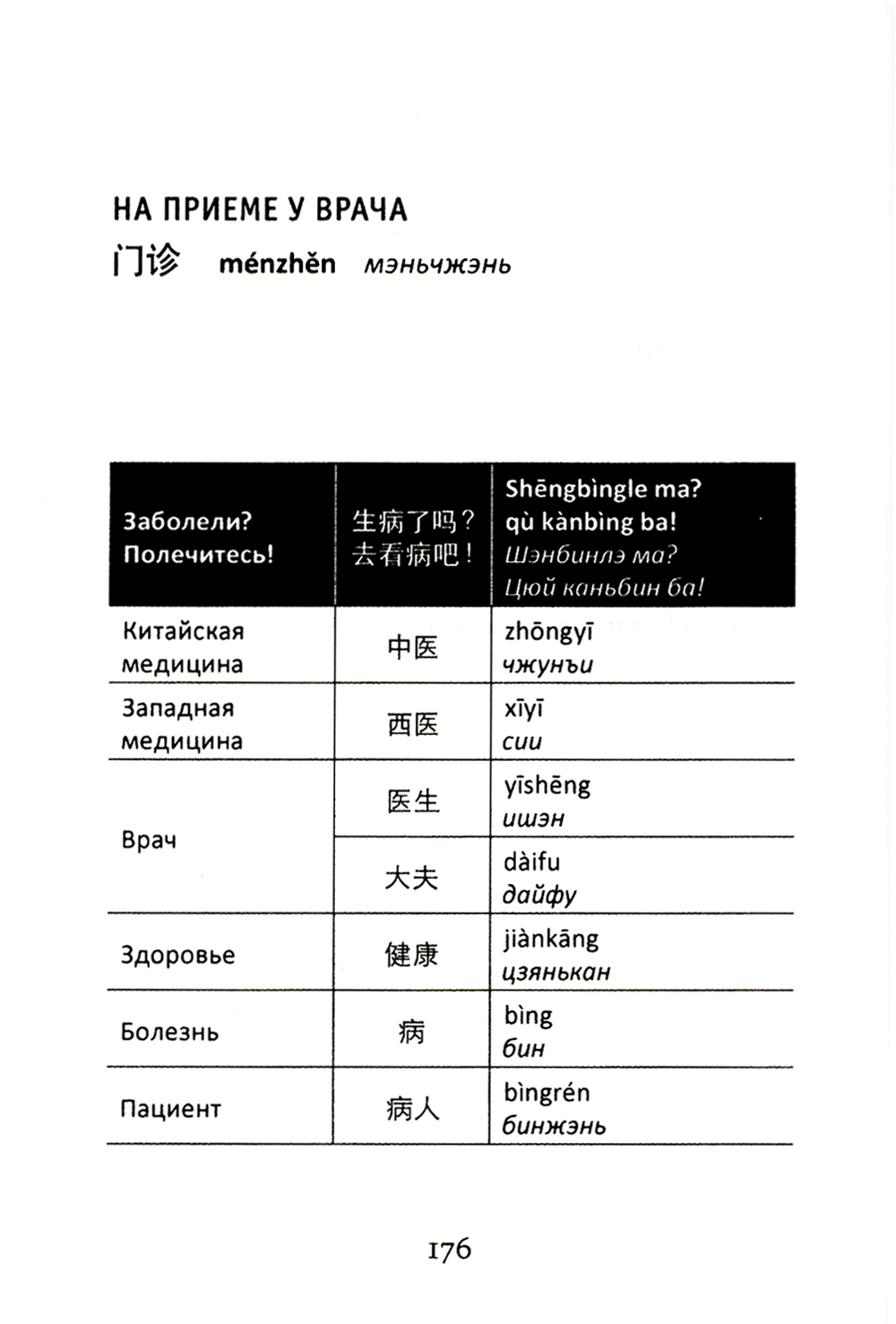 Во второй части книги вы найдете словарь-разговорник терминов как китайской, так и западной медицины, включающий все возможные ситуации общения во время приема. Он удобен и прост, в нем есть все необходимое, но нет ничего лишнего. Книга будет полезна для тех, кто: