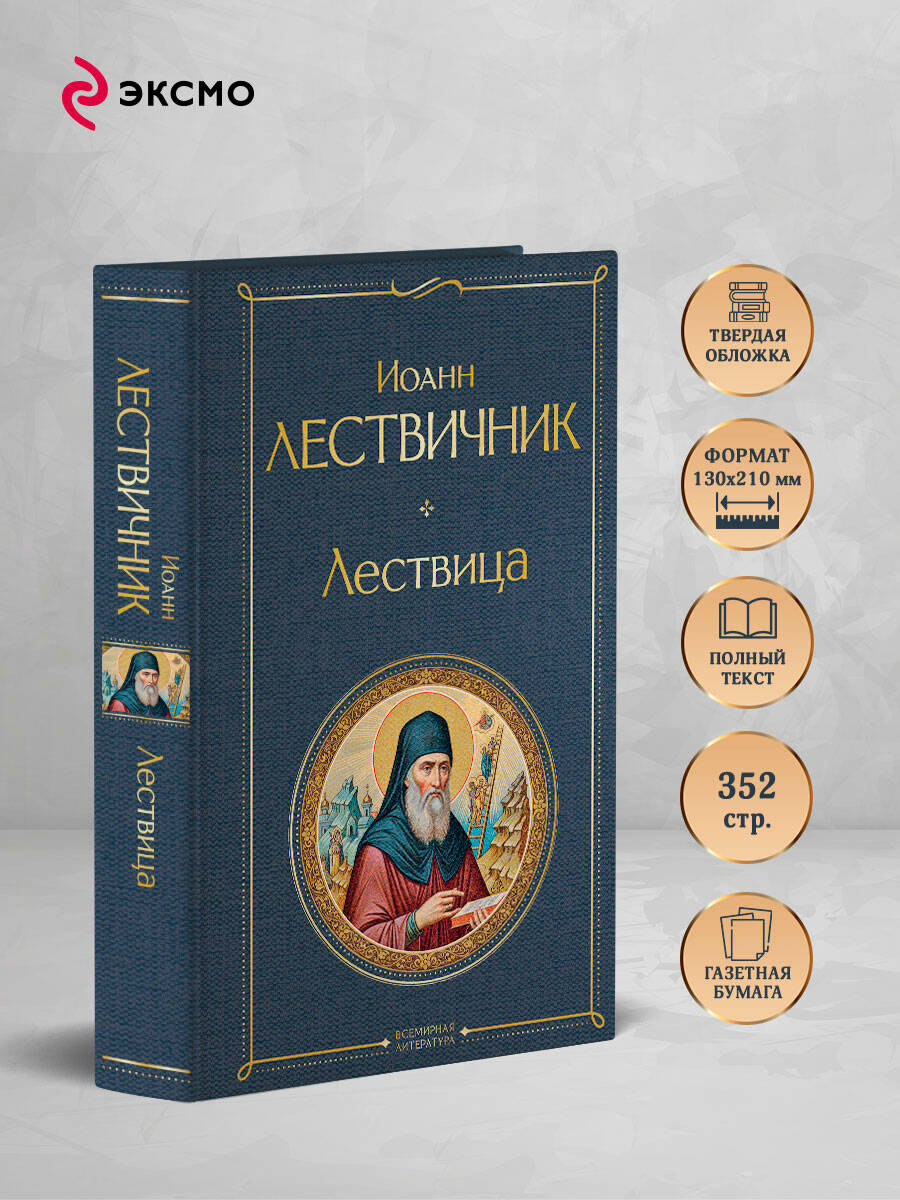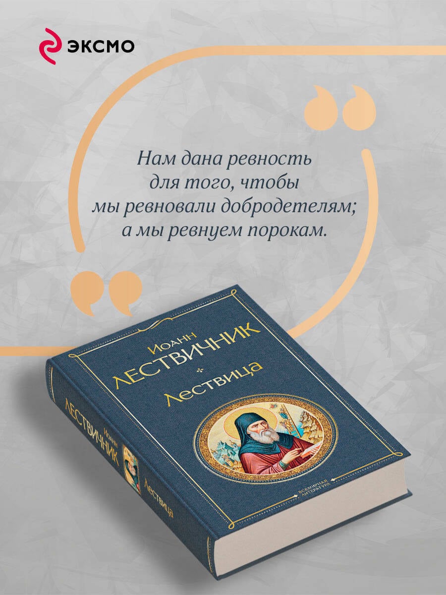 Иоанн Лествичник - византийский философ, игумен Синайского монастыря. Причислен к лику святых Православной и Католической церквями. Его главный труд, «Лествица», был создан в середине VI века по просьбе Иоанна, игумена Раифского монастыря. Книга относится к аскетической духовной литературе и состоит из 30 глав, представляющих собой «ступени» добродетелей, по которым христианин должен восходить на пути к духовному совершенству. Число ступеней символично: тридцать лет - возраст, в котором Иисус Христос начал свое общественное служение. Образ отсылает к библейскому видению Иакова, которому явилась лестница, достигающая неба, по которой восходят и нисходят ангелы, а наверху стоит Сам Господь.| Издательство | ООО "Издательство "Эксмо" |
