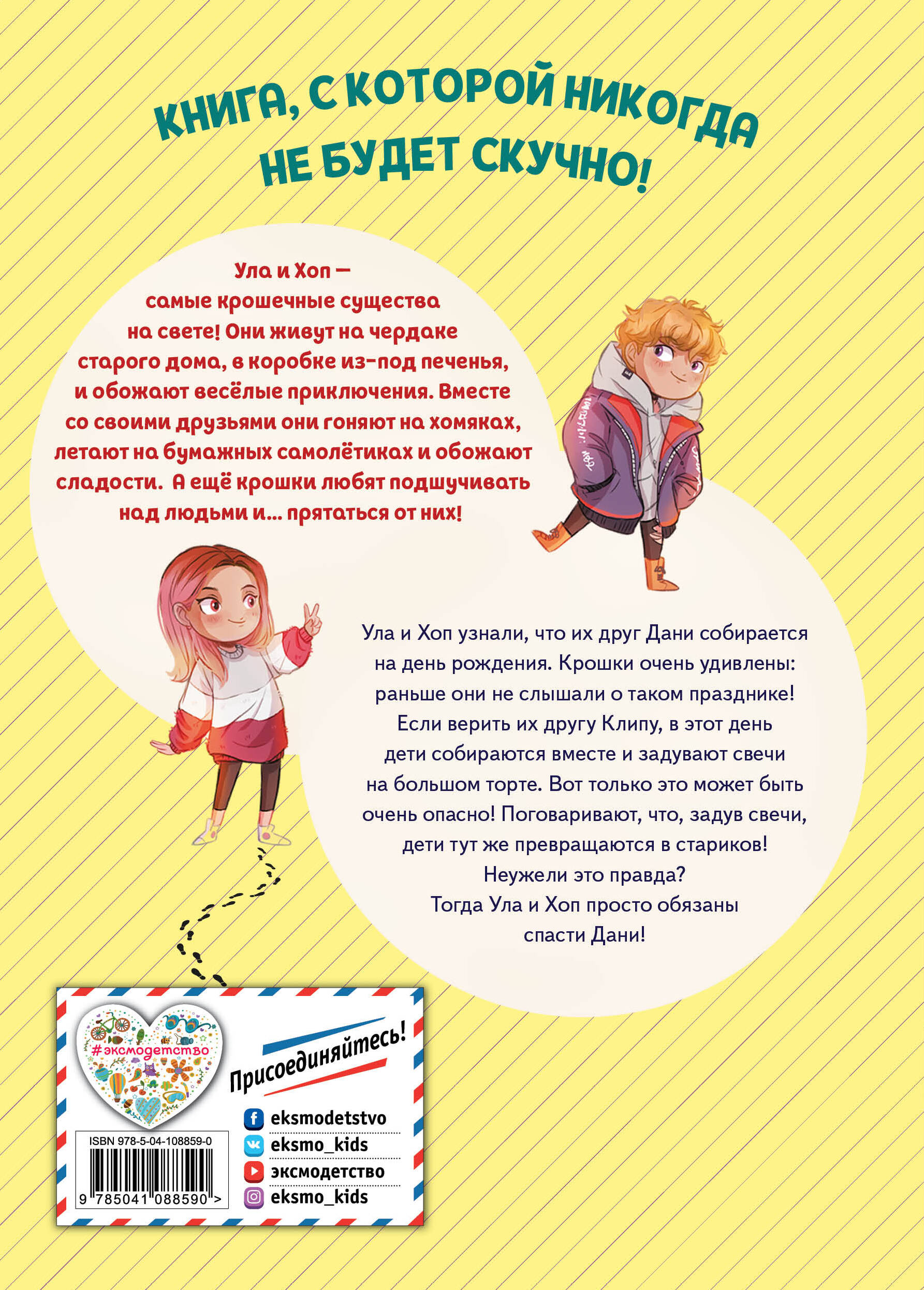 Друг крошек Дани собирается на день рождения! Ула и Хоп никогда раньше не слышали о таком диковинном празднике. Говорят, в этот день дети задувают свечи на большом торте. Вот только Ула и Хоп не уверены, что это безопасно. Что, если, задув свечи, Дани тут же превратится в старика?! Они просто обязаны предотвратить это и пойти на праздник вместе с ним. Но они ещё не знают, как много сюрпризов их там ждёт! Нет никаких сомнений, что это будет незабываемое приключение! С крошками Улой и Хопом никогда не будет скучно! Веселье, приключения и озорные шалости ждут вас! История написана простым, доступным языком специально для детей, которые только привыкают к чтению. В книге много ярких стильных иллюстраций, а также плотная бумага, крупный шрифт и удобный формат. Она точно понравится поклонникам серии «Изадора Мун», ведь была сделана специально для них!| Издательство | ООО "Издательство "Эксмо" |