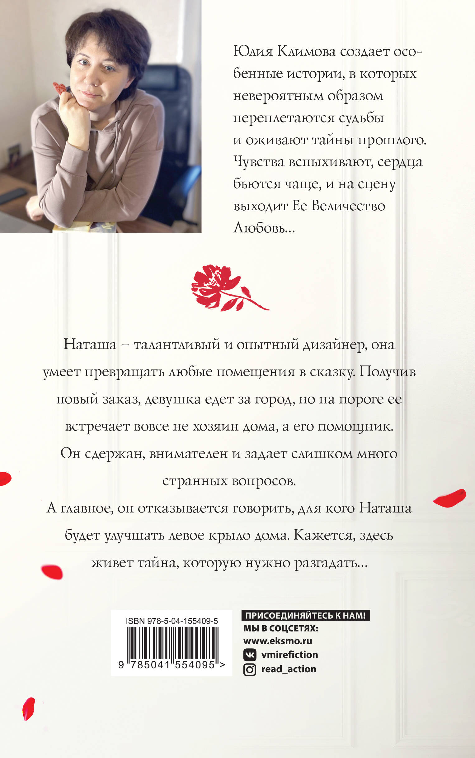Увлекательные истории Юлии Климовой пропитаны мечтами и романтикой. Каждая книга - особый мир, в котором хочется остаться. Наташа - талантливый и опытный дизайнер, она умеет превращать любые помещения в сказку. Получив новый заказ, девушка едет за город, но на пороге ее встречает вовсе не хозяин дома, а его помощник. Он сдержан, внимателен и задает слишком много странных вопросов. А главное, он отказывается говорить, для кого Наташа будет улучшать левое крыло дома. Кажется, здесь живет тайна, которую нужно разгадать…| Издательство | ООО "Издательство "Эксмо" |