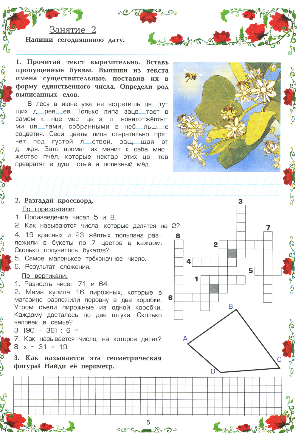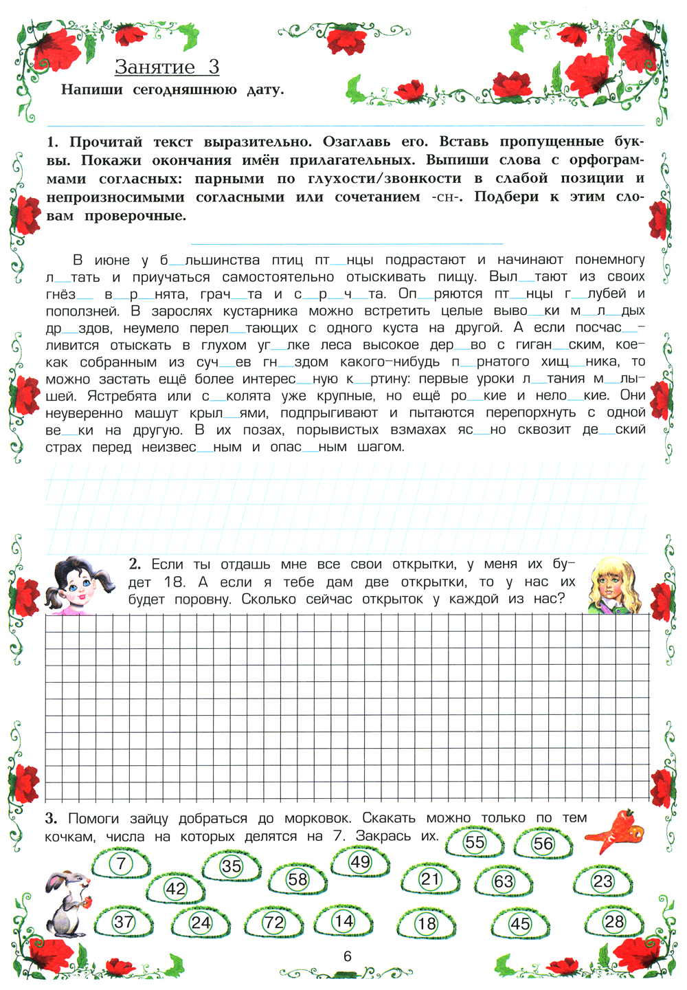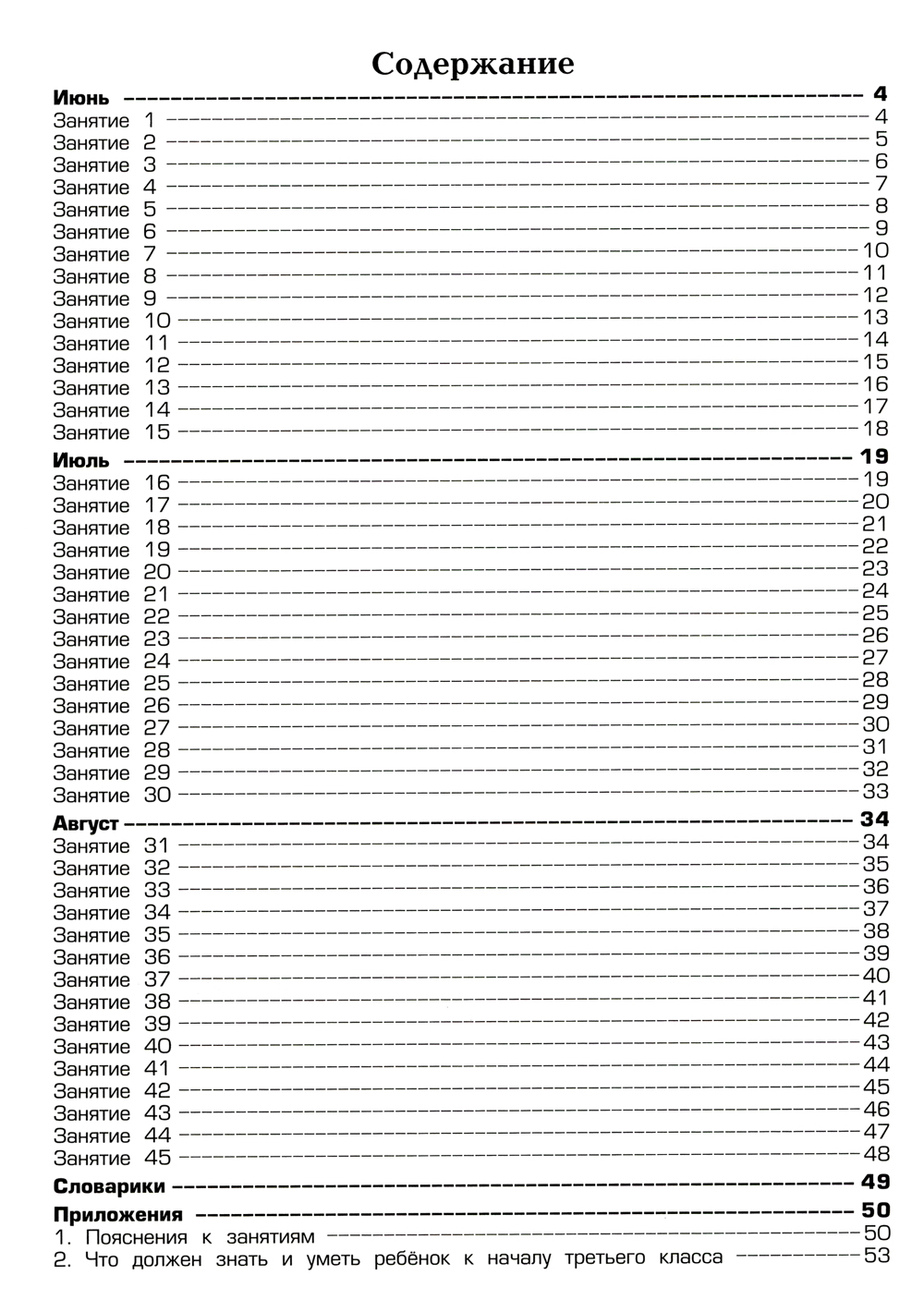Теперь как опытные родители школьников вы наверняка убедились, что с детьми во время летних каникул обязательно нужно заниматься. Во-первых, дети ничего не забудут и будут спокойно и уверенно чувствовать себя в следующем классе. Во-вторых, это полезно и с воспитательной точки зрения. Абсолютное безделье ещё никому не приносило пользы. «Летняя гимназия на дому» содержит материал, который даст возможность ребёнку регулярно и без особого напряжения повторять всё изученное во втором классе. В пособии 45 занятий. Следовательно, заниматься по нему нужно через день. А в свободный от этого пособия день я бы посоветовала читать те книги, которые учительница задала вам на лето (если будет возможность, книги из списка читайте каждый день!). В пособии нет достаточно больших текстов для чтения, но у вас есть книги, которые нужно прочитать за лето.| Издательство | Грамотей |