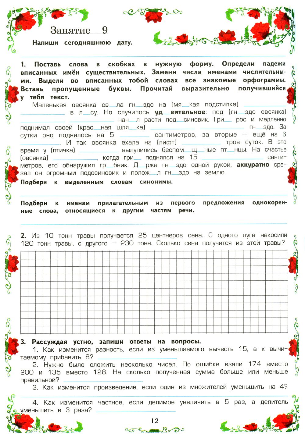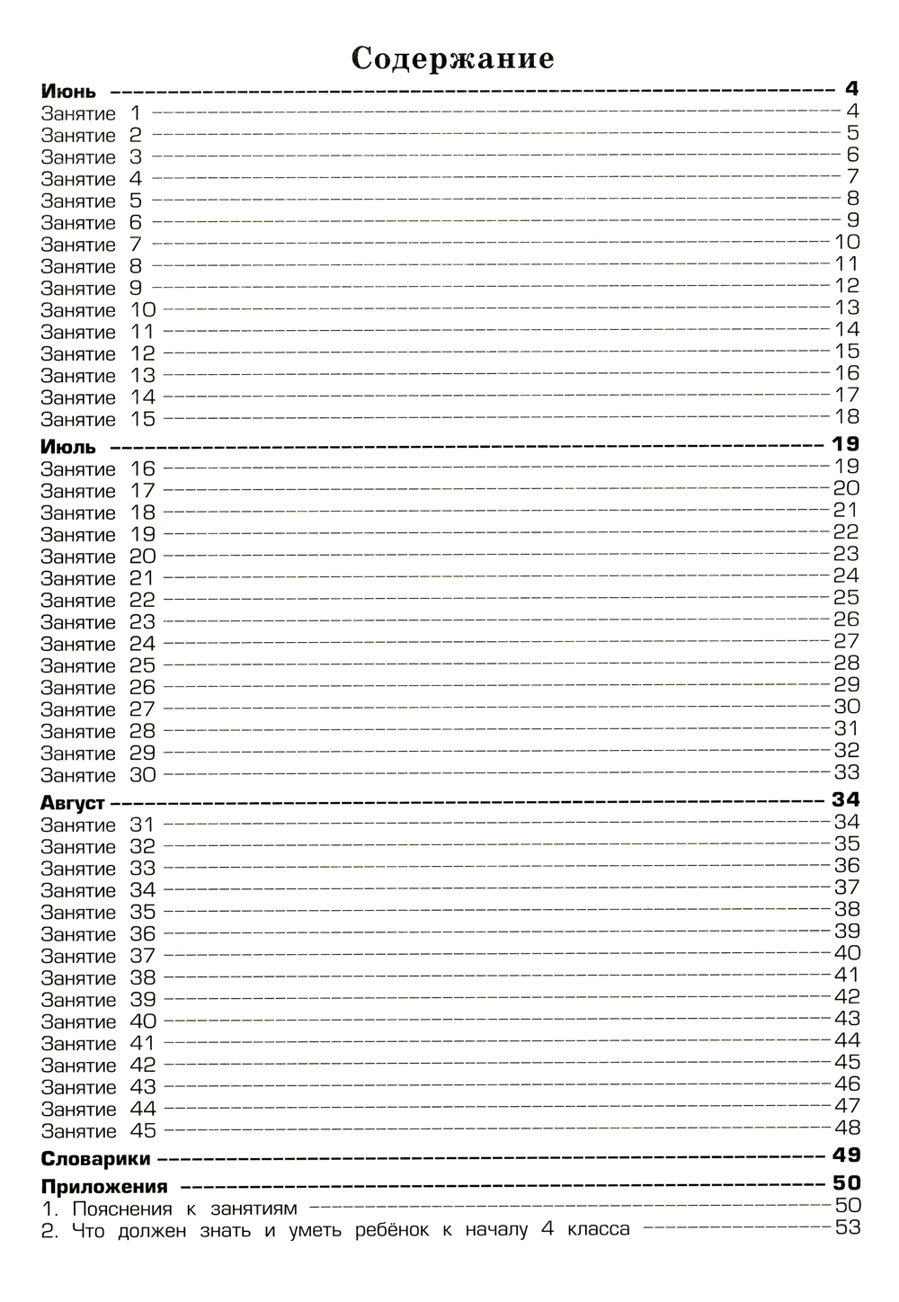 Теперь как опытные родители школьников вы наверняка убедились, что с детьми во время летних каникул обязательно нужно заниматься. Во-первых, дети ничего не забудут и будут спокойно и уверенно чувствовать себя в следующем классе. Во-вторых, это полезно и с воспитательной точки зрения. Абсолютное безделье ещё никому не приносило пользы. «Летняя гимназия на дому» содержит материал, который даст возможность ребёнку регулярно и без особого напряжения повторять всё изученное в 3 классе.| Издательство | Грамотей |