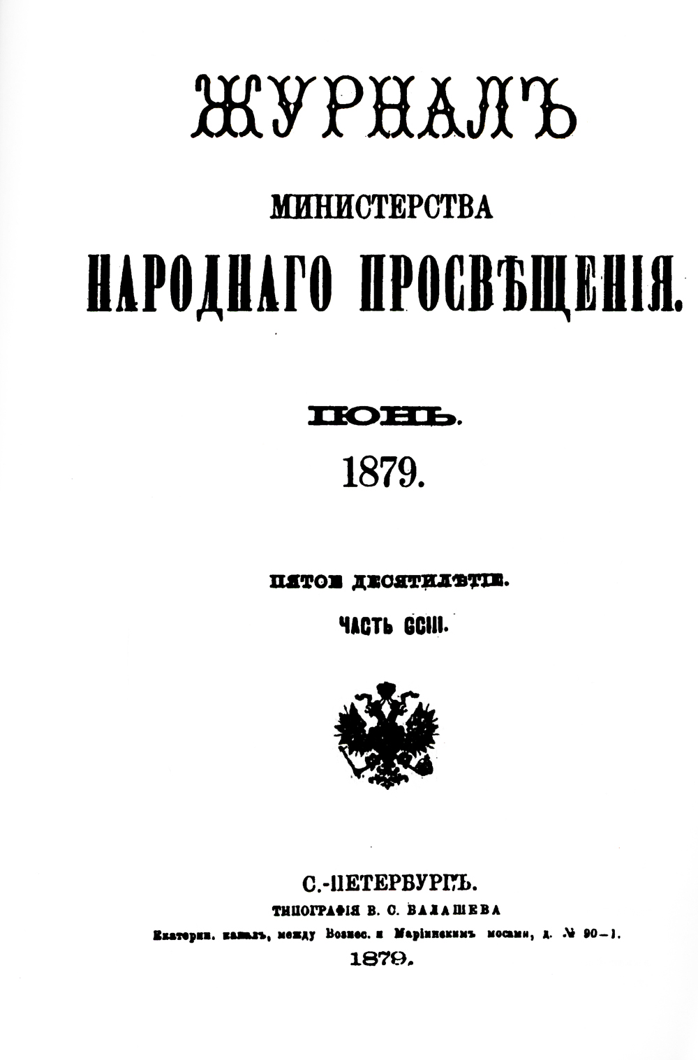 Журнал министерства народного просвещения. Июнь 1879. Пятое десятилетие. Часть 203. (1879 Санкт-Петербург, Типография В. С. Балашева)
