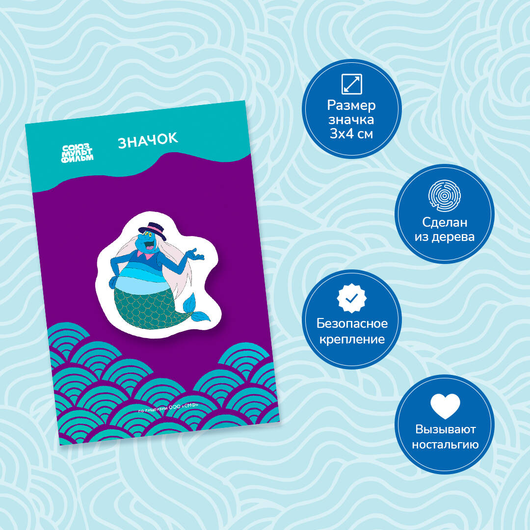 Значок с Водяным из мультфильма «Летучий корабль». Идеально подойдет для тех, кому надоела жизнь-жестянка, надоело общество пиявок и лягушек и охота летать. Внимание! Обложка на паспорт вызывает ностальгию и желание петь песни из мультфильма. Рекомендуем дарить детям и взрослым всех возрастов. Размер значка 3х4 см, формат подложки 6,5х9,5 см. Значок сделан из дерева и продается в индивидуальной упаковке с европодвесом. Водяной станет отличным дополнениям образа - его можно прикрепить на рюкзак или одежду. Значок сделан к премьере фильма «Летучий корабль», который вышел 21 марта 2024 года. Главные роли исполняют: Полина Гагарина, Леонид Ярмольник, Федор Добронравов, Сергей Гармаш и другие.| Издательство | ООО "Издательство "Эксмо" |