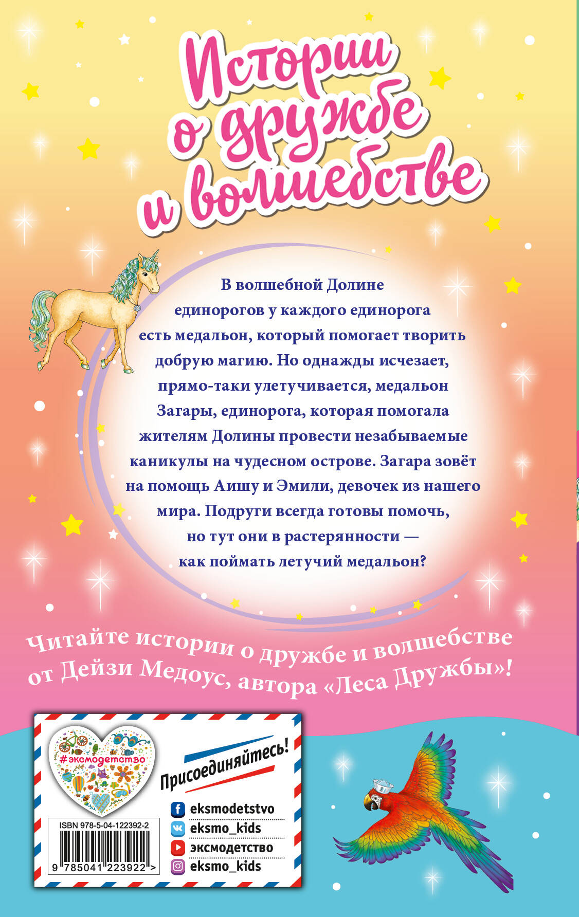 Каникулы на волшебном острове! Что может быть чудеснее? Аишу и Эмили, девочек из нашего мира, ждёт незабываемый отдых на потрясающем острове, окружённом бирюзовым морем. Но всё идёт не так. Море бушует, песок слишком мягкий, если не сказать зыбучий, солнце палит нещадно… Аиша и Эмили уже знают - такое происходит, когда что-то случается с медальоном, отвечающим за добрую магию. И теперь надо понять, что случилось и как всё исправить. Дейзи Медоус - автор популярного в России цикла про Лес Дружбы. Её новые истории - для любительниц волшебных существ: фениксов, драконов, единорогов. И, разумеется, сторонниц настоящей девчоночьей дружбы! Потому что никакое волшебство не поможет, если не научишься быть отзывчивой и ответственной, если сама не приложишь усилия и не постараешься. Крупный шрифт, красивые чёрно-белые иллюстрации, переливающаяся голографическая обложка, увлекательная история понравятся как тем детям, которые уже любят читать, так и тем, у которых навыки чтения ещё не закрепились. Подходит для родителей, которые хотят, чтобы дети втянулись в чтение!| Издательство | ООО "Издательство "Эксмо" |