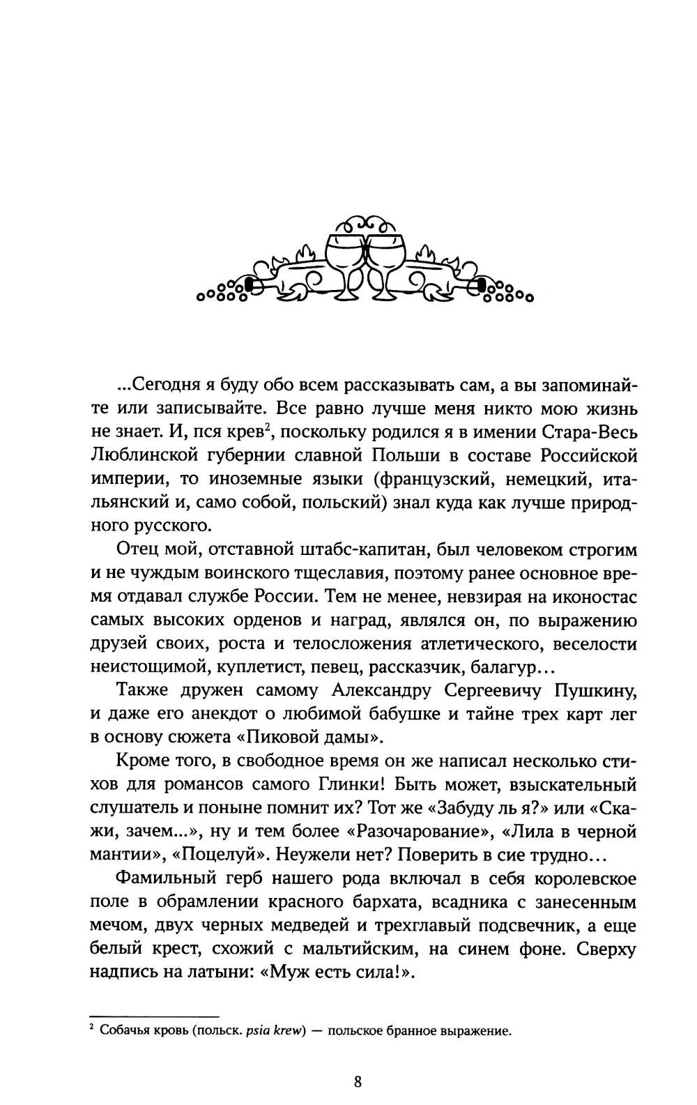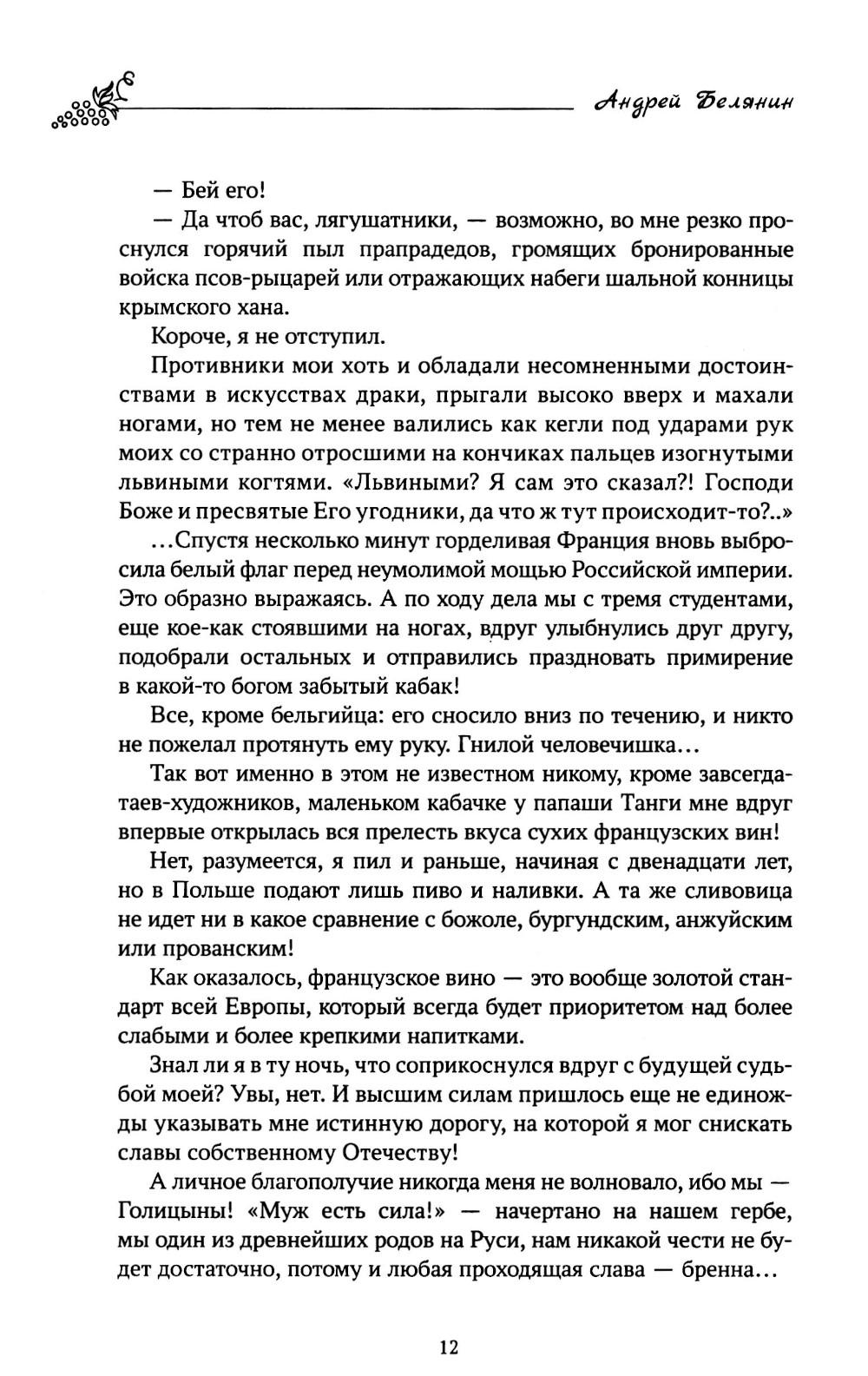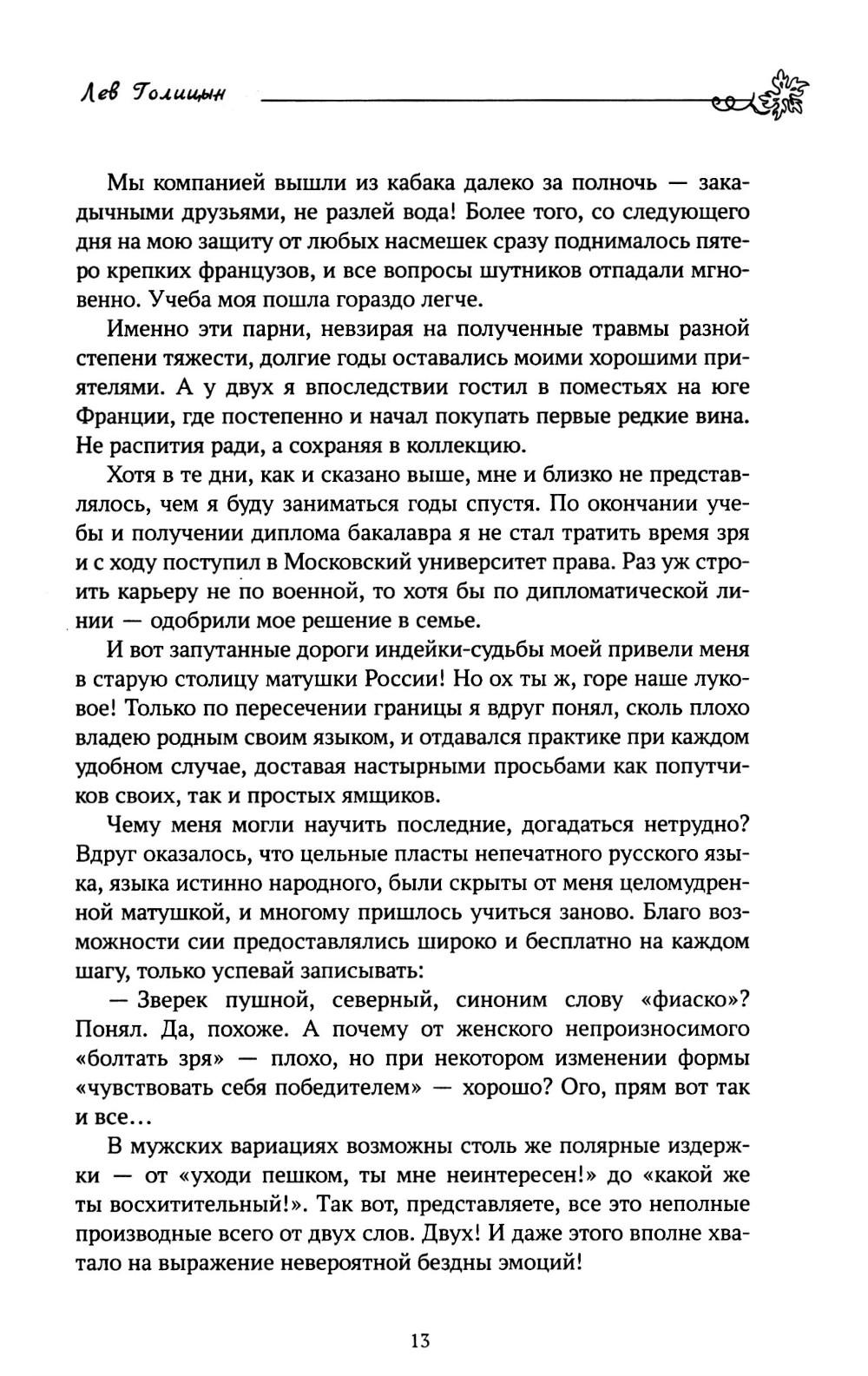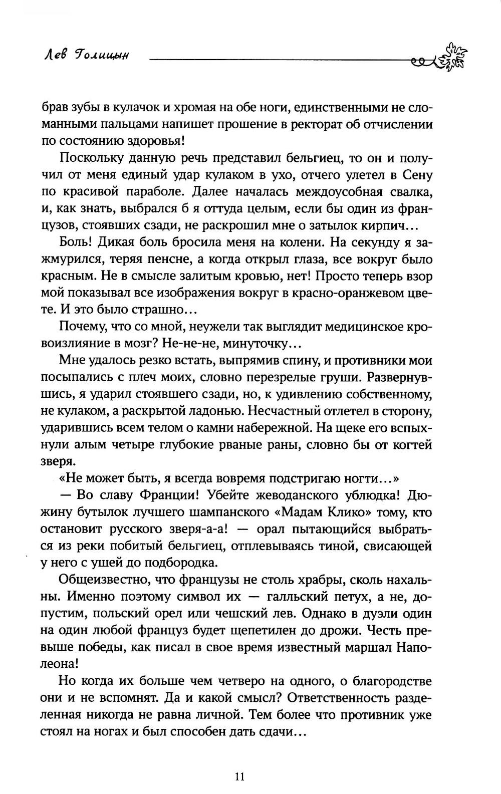 Его имя - Лев Голицын. Он потомок древнейшего боярского рода. Человек, равного которому не было и нет. Создатель русского виноделия, «король сомелье», отнявший у французов приз за лучшее шампанское! Но стоило стать ему поперек пути вампирам, ведьмам, оборотням и прочей нечисти - он показал настоящие львиные клыки и когти! И уже тогда ни пуля, ни нож, ни колдовство не способны были остановить Льва из Нового Света... Ее имя - Лана. Это древнее, мистическое имя, символ таинств языческой веры, воплощение Великой праматери Природы, тихая лань с христианским крестом меж рогов... Она же современная девушка, прошедшая страшный путь предательства и боли, продавшая душу дьяволу и вечно обреченная платить по счетам собой. Но только ей дано встать поперек воли самой Астарты, остановить неугасимую ненависть буддистского бога войны Махагалы, выдержать взгляд мертвых глаз барона Унгерна и вступить в нереальную борьбу двух сердец за могилу Антихриста, скрытую в прикаспийских песках... Ее имя - Ласка. И на первый взгляд она обычная лошадь, но первый взгляд часто бывает обманчив. Молодому художнику, пытающемуся в деревенской глуши залечить сердечные раны, суждена встреча с ней. И эта встреча изменит всю его жизнь... Сборник избранных произведений одного из лучших отечественных авторов жанра фэнтези. Произведений привычно остроумных, неизбежно увлекательных и неожиданно романтично-печальных. Герои, с которыми не хочется прощаться.| Издательство | Феникс |