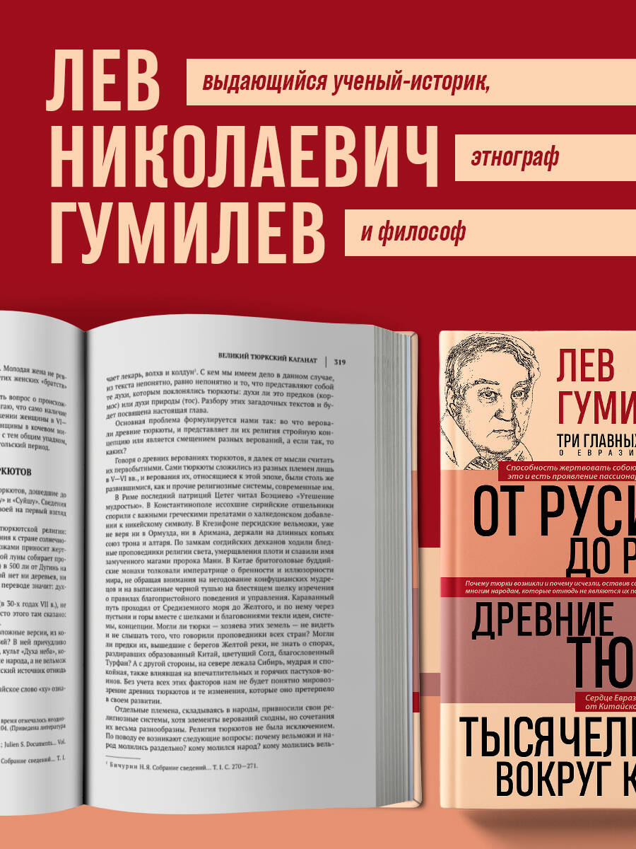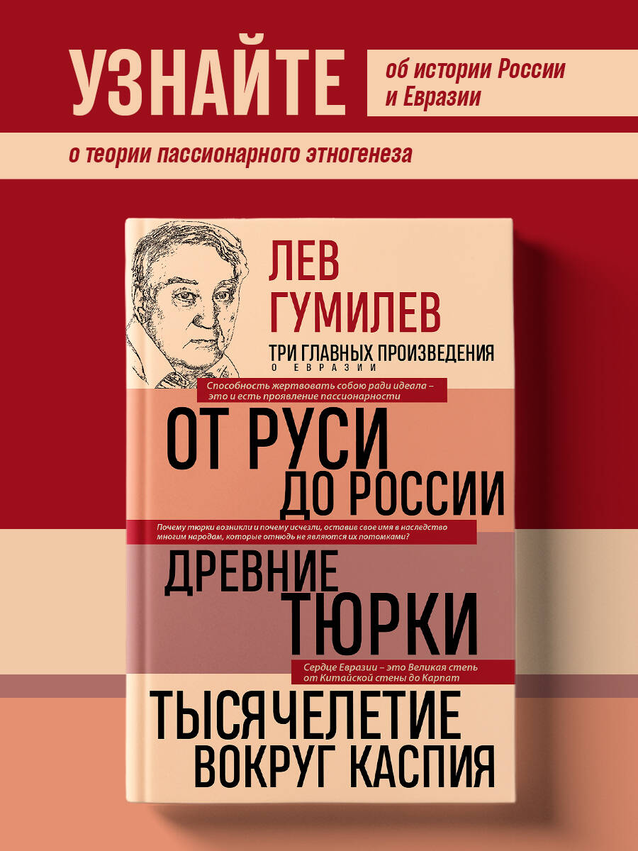 В книге «Лев Гумилев. От Руси к России. Древние тюрки. Тысячелетие вокруг Каспия» собраны три главных произведения автора, раскрывающие его уникальную теорию пассионарности и оригинальный взгляд на историческое развитие России. Под одной обложкой собраны знаменитые тексты об эволюции народов, населяющих территорию современной России, об истории тюрков, оказавших значительное влияние на развитие России, и этнологическое исследование Евразии, охватывающее полторы тысячи лет. Из этой книги вы узнаете, как возникают и угасают цивилизации, кто двигает вперед целые народы и каким образом современная Россия стала такой, как сейчас. Лев Николаевич Гумилев (1912-1992) - учёный, писатель и переводчик, археолог, востоковед и географ, историк, этнолог, философ, создатель знаменитой пассионарной теории этногенеза.| Издательство | ООО "Издательство "Эксмо" |