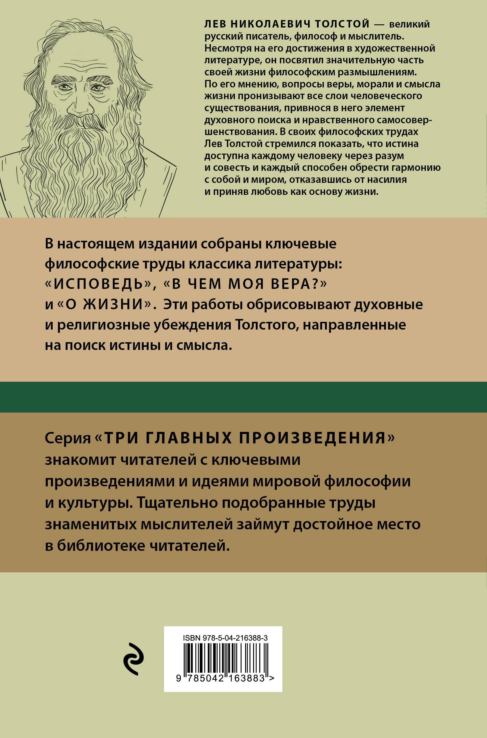 Лев Николаевич Толстой, великий российский писатель и мыслитель, не только оставил богатое литературное наследие, но и посвятил значительную часть своей жизни философским размышлениям. После духовного кризиса в конце 1870-х годов Толстой обратился к вопросам веры, морали и смысла жизни, что привело его к созданию трудов «Исповедь», «В чем моя вера?» и «О жизни». В «Исповеди» Толстой исследует свое духовное пробуждение, делясь честными и порой мучительными раздумьями. После успехов в литературной карьере и личной жизни писатель испытывает чувство глубокой пустоты и тоски, приводящее его к размышлениям о религиозных истинах и сущности человеческого бытия. В трактате «В чем моя вера?» он предлагает более простую форму христианства, основанную на любви и ненасилии, что оказало влияние на таких деятелей, как Махатма Ганди и Мартин Лютер Кинг. В эссе «О жизни» писатель продолжает исследование темы моральных и духовных исканий. Эти труды могут не только показать эволюцию Толстого как мыслителя, но и, даже сегодня, помочь людям найти собственный путь к истине. Серия «Три главных произведения» знакомит читателя с ключевыми трудами и идеями мировой философии и культуры. Тщательно подобранные произведения знаменитых мыслителей займут достойное место в библиотеке читателей.| Издательство | ООО "Издательство "Эксмо" |