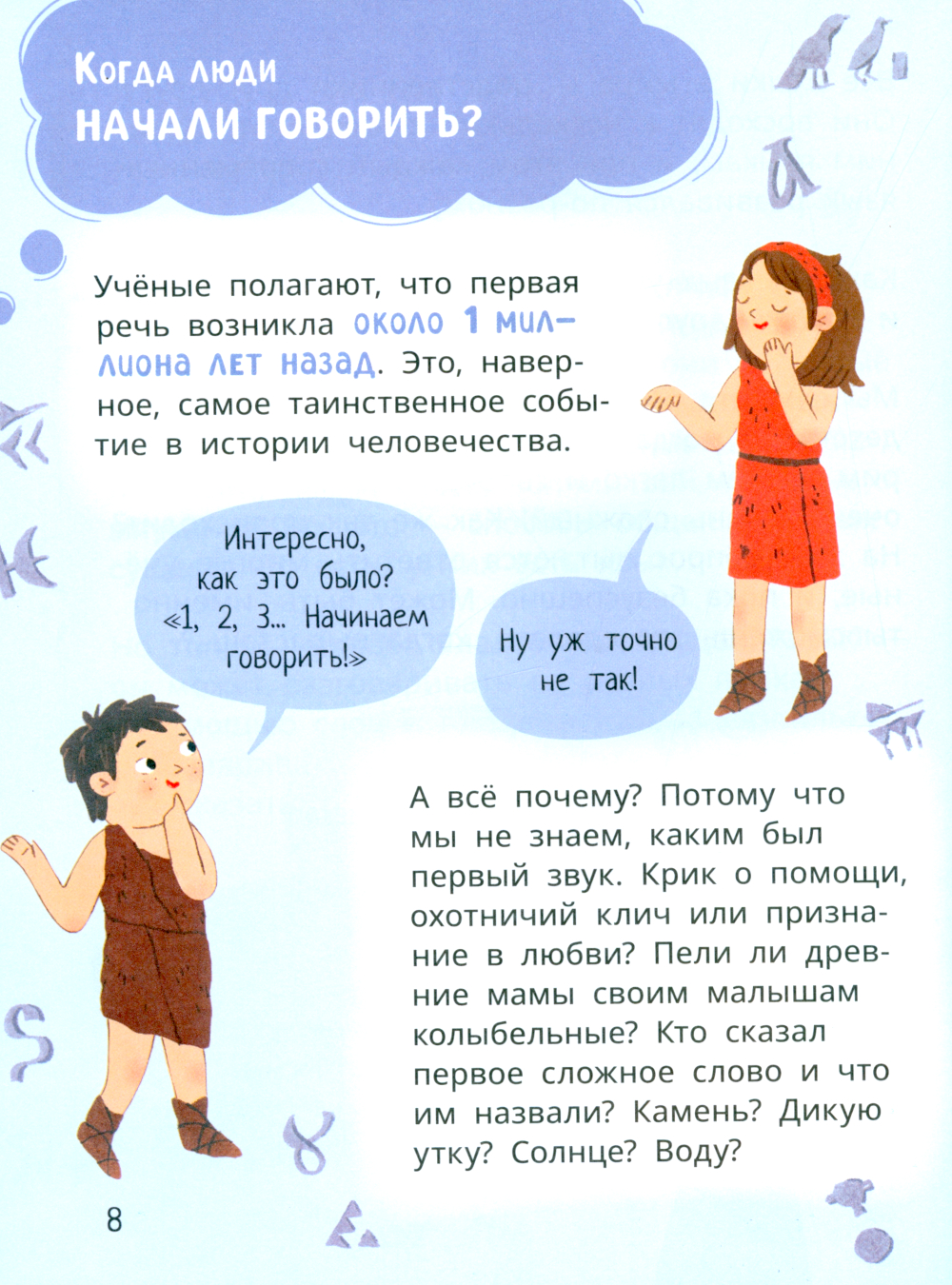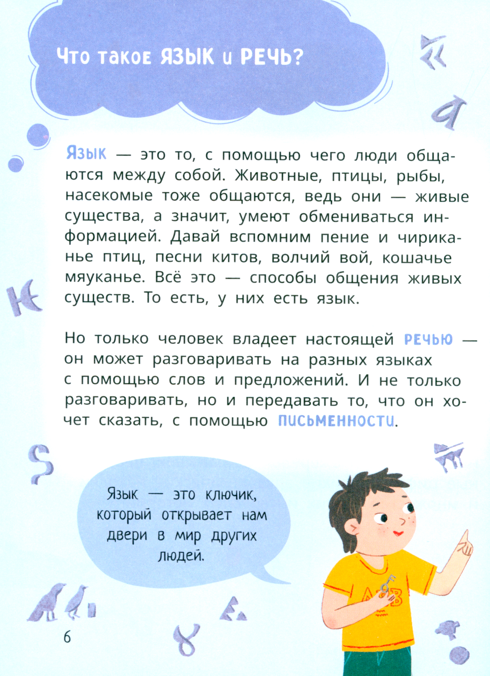 Как люди общались друг с другом до появления речи? Почему первый в мире алфавит записывался на сырой глине, и кто придумал букву «А»? Как расшифровывали древние иероглифы? Сколько в мире языков и почему они такие разные? Не думай, что на интересные детские вопросы бывают только сложные и скучные взрослые ответы. Если любишь узнавать новое и увлекательное об окружающем мире - скорее открывай эту книгу! Ты задаёшь вопросы - Лёва и Лиза на них отвечают!| Издательство | Детская литература |