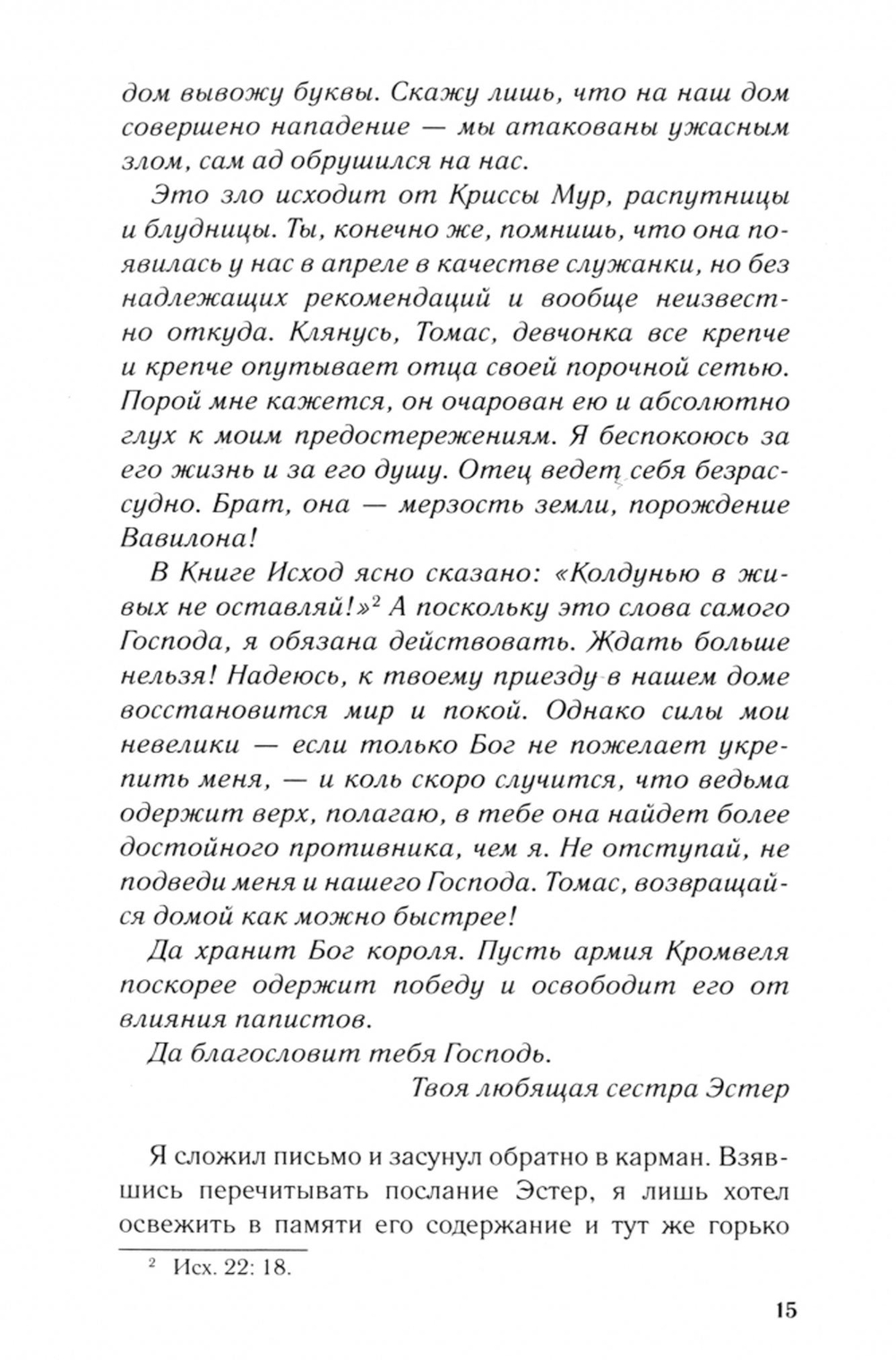 XVII век. Время, когда люди еще свято верили в силу магии и рубили головы невинным жертвам, обвиняя их в колдовстве. На ферме семейства Тредуотеров творятся странные события. Пожилой хозяин неожиданно впал в кому и умер, стадо овец за одну ночь полегло от страшной болезни. И на этом таинственные преступления не заканчиваются. Дочь фермера, шестнадцатилетняя Эстер, не сомневается: это деяния новой служанки Криссы Мур, ведьмы. Виновницу бросают в темницу и пытками стараются добиться признания. Но молодого Томаса Тредуотера терзают сомнения: что-то в поведении самой Эстер начинает настораживать его... Хелен-Роуз Эндрюс написала удивительный роман, в котором нашлось место не только семейной драме и ожившему мифологическому чудовищу, но также любви и философии.| Издательство | Аркадия |