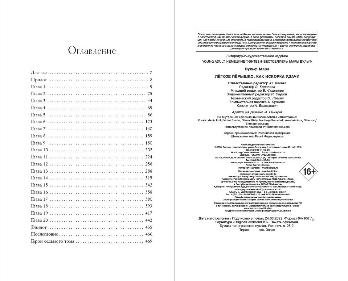 Где-то в Аваллахе, на поляне жриц, спрятано живое сердце всего магического мира - Священное дерево. Лишь оно может помочь Элизе уничтожить три злополучные печати. И когда это случится, коварный Дэмиан де Винтер наконец будет повержен, дерево пробудится от зимнего сна, а в Аваллахе вновь наступит благодать. Но Дэмиан сбегает в Запретное королевство, и Элиза - единственная, кто может последовать за ним. Мир Кассиана и эльфов на грани исчезновения, а девушке вновь предстоит бороться с целым сонмом врагов. Удастся ли ей вернуться вовремя, чтобы спасти тех, кого любит? Или же она навсегда останется в плену запретной магии? Заключительная седьмая часть цикла «Лёгкое пёрышко» об Элизе и эльфах, шелликотах, колдунах и других магических созданиях. В этой части Элиза должна отправиться за колдуном Дэмианом в Запретное королевство. Ведь у него в руках последняя, третья печать. Если героям удастся уничтожить все три с помощью Священного дерева, то Дэмиан, наконец, потерпит поражение, а в Аваллахе снова наступит мир! Но удастся ли друзьям выбраться из плена запретной магии, если ее сети настолько притягательны? Детектив, триллер, романтическое фэнтези. В романе сочетаются многие жанры, но в любом случае, это красивая, яркая, насыщенная событиями сказка, которая позволит вам перенестись в мир эльфов, их эстетику и воплотит многие фантазии в реальность! Цикл, который объединяет мир шелликотов из «Саги серебряного мира» с миром эльфов, но его можно читать независимо от нее! В конце каждой книги - глоссарий с описанием персонажей. Невероятное оформление на мерцающей бумаге, а все семь корешков рядом создают сказочный коллаж. Собери всю коллекцию! Мара Вульф - автор более 25 бестселлеров! В ее новом цикле выйдет 7 потрясающих книг о сказочных созданиях, которых так все любят, - эльфах. Они тщеславны, заносчивы и упрямы. Но крайне обворожительны! Убедитесь сами!| Издательство | ООО "Издательство "Эксмо" |