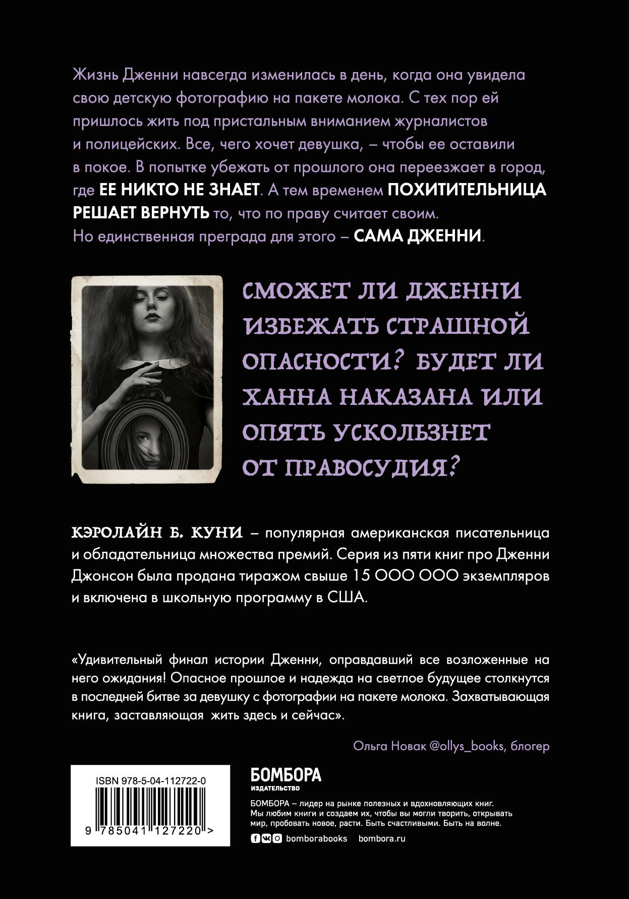 Заключительная книга культовой серии «MOLOKO», проданной в мире тиражом 15 000 000 экземпляров. БЕСТСЕЛЛЕР AMAZON с 1990 года. Жизнь Дженни круто изменилась в день, когда она увидела свою детскую фотографию на коробке молока. С тех пор ей не давали покоя ни полицейские, ни журналисты. Все, чего хочет девушка - чтобы ее оставили в покое. В попытке убежать от прошлого, она переезжает в город, где ЕЕ НИКТО НЕ ЗНАЕТ. А тем временем ее ПОХИТИТЕЛЬНИЦА РЕШАЕТ ВЕРНУТЬ то, что по праву считает своим. Но единственная преграда для этого - САМА ДЖЕННИ. СМОЖЕТ ЛИ ДЖЕННИ ИЗБЕЖАТЬ СТРАШНОЙ ОПАСНОСТИ? БУДЕТ ЛИ ХАННА НАКАЗАНА ИЛИ ОПЯТЬ УСКОЛЬЗНЕТ ОТ ПРАВОСУДИЯ? «Удивительный финал истории Дженни, оправдавший все возложенные на него ожидания! Опасное прошлое и надежда на светлое будущее столкнутся в последней битве за девушку с фотографии на пакете молока. Захватывающая книга, заставляющая жить здесь и сейчас». - Ольга Новак @ollys_books, блогер| Издательство | ООО "Издательство "Эксмо" |