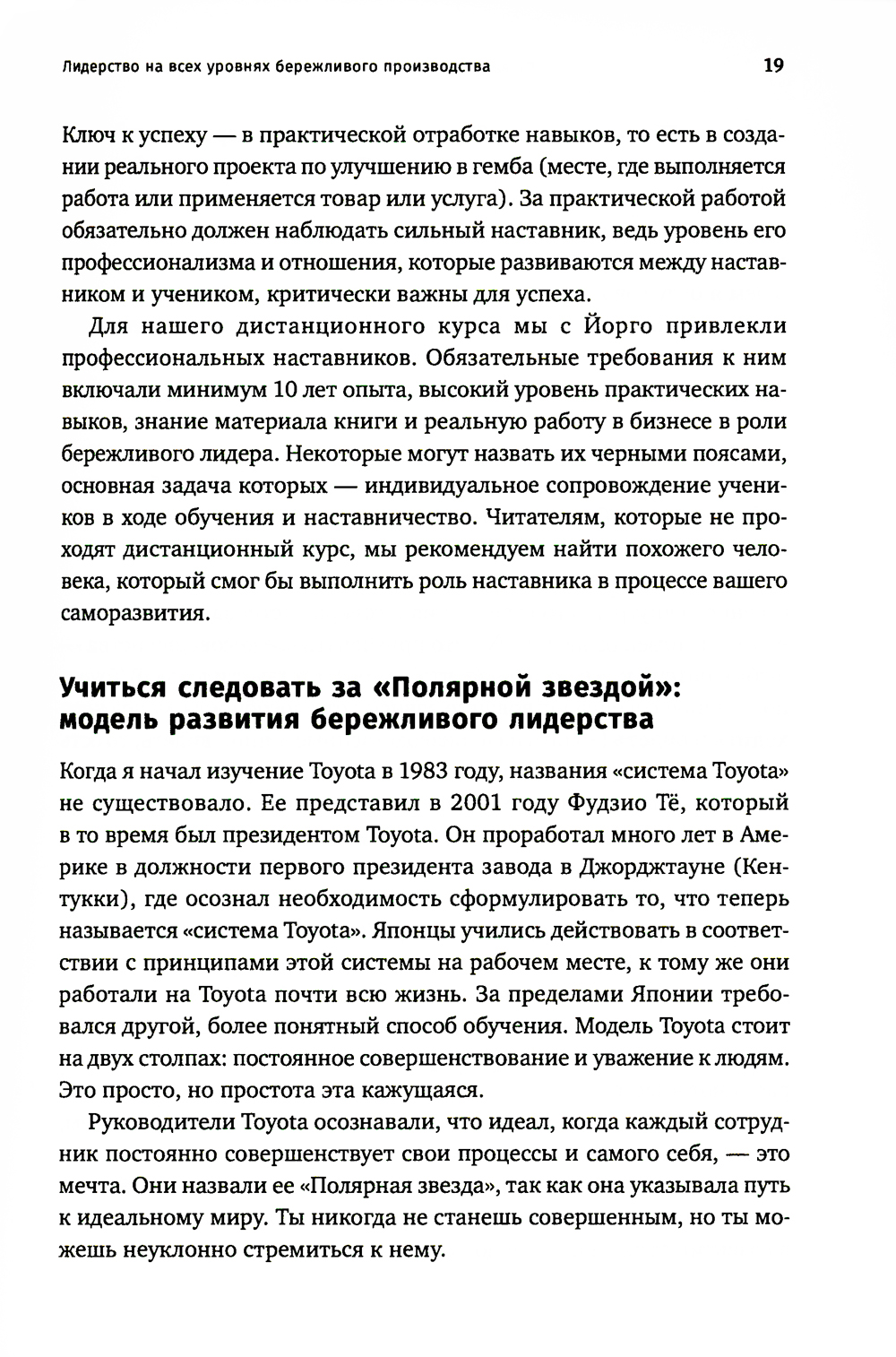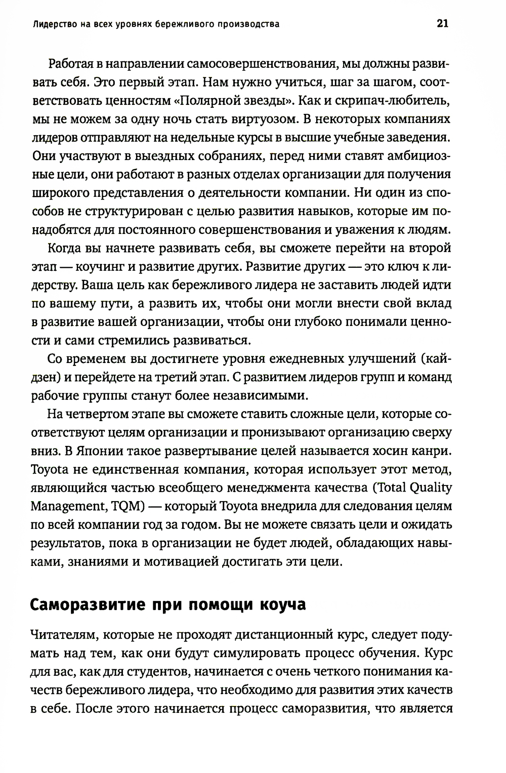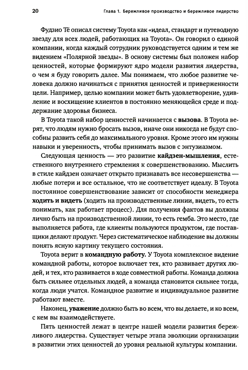 Компания может расти и развиваться ровно настолько, насколько она развивает своих лидеров. Времена, когда организациям нужны были только грамотные исполнители, остались в прошлом. Сегодня развитие невозможно без личного участия каждого. Именно так выглядит настоящее лидерство: руководитель, который побуждает коллег постоянно совершенствоваться. Каждый процесс должен улучшаться каждый день! Джеффри Лайкер - ведущий мировой эксперт по методам Toyota, автор множества книг, включая «Дао Toyota», «Практика дао Toyota» и многие другие, - рассказывает о самом главном секрете Toyota: уникальной системе развития лидеров, которую компания разрабатывала в течение нескольких десятилетий. Именно эту систему и стоит внедрять вместо простого копирования отдельных инструментов бережливого производства: «точно вовремя», канбан и других.| Издательство | Альпина Паблишер |