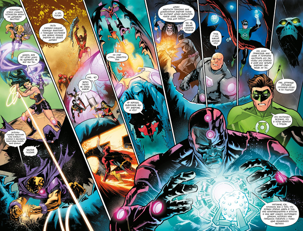 Супермен. Бэтмен. Чудо-Женщина. Аквамен. Флэш. Киборг. Зеленый Фонарь. Хокгёрл. Марсианский Охотник. Их силы разнятся так же, как и характеры, но герои объединены одной целью: защитить Землю любой ценой. Они - Лига Справедливости. И с подобным им сталкиваться еще не приходилось. Тотальность - энергетическое ядро всего сущего - вырвавшись из Стены Источника, пролетела сквозь Вселенную и ударила по Земле в пустыне Невады. И теперь все, что соприкасается с этой энергией, становится… иным. Конечно, такая сила не может не привлекать жадных до власти, безумных, безжалостных чудовищ, имя которым… Легион Погибели. Лекс Лютор собрал заклятых врагов Лиги Справедливости: Синестро, Черную Манту, Гепарду, Гориллу Гродда и самого Джокера - в несокрушимую армию, чтобы захватить Тотальность и использовать ее в личных целях… Так Лига выступила против Легиона: и величайшие герои столкнулись с величайшими злодеями.| Издательство | Азбука |