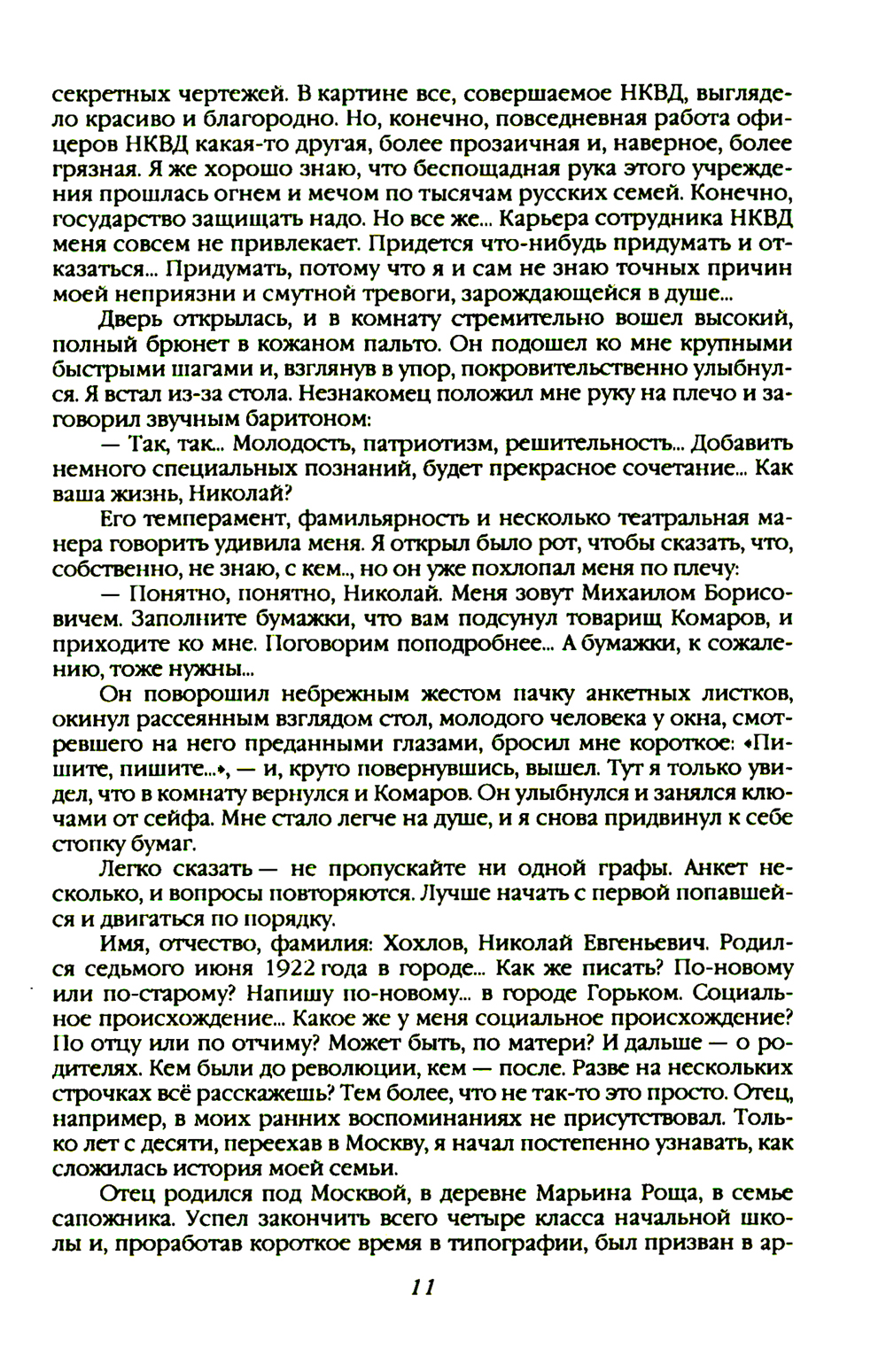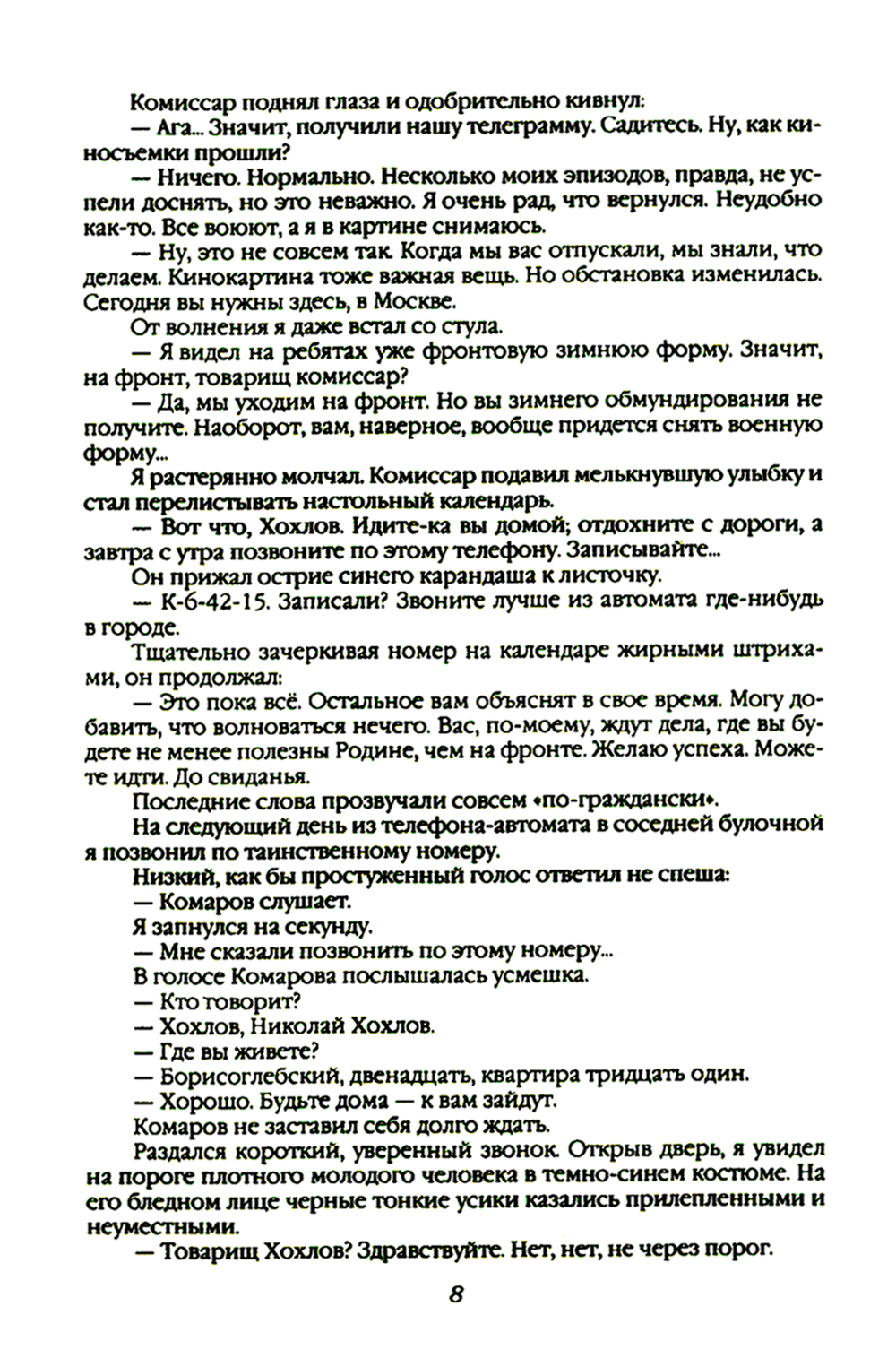 Окончивший школу летом 1940 года Николай Хохлов мечтал быть актером и "делать кино". И начал двигаться по пути достижения этой цели. Спустя год его жизнь радикально изменилась. Он продолжал лицедействовать, изображая врагов советской власти, немецких офицеров и иностранцев. Вот только малейшая ошибка могла стоить ему жизни. А режиссировал он не кинокартины или спектакли, а убийства врагов СССР, принимая активное участие в своих "постановках"… В сентябре 1941 года он был завербован сотрудниками 2-го отдела НКВД, возглавляемого Павлом Судоплатовым, и стал одним из ликвидаторов с Лубянки. А в 1954 году Николай Хохлов сбежал на Запад. В СССР заочно был приговорен к расстрелу. В 1957 году он был отравлен, предположительно с помощью радиоактивного изотопа - таллия или полония, но выжил после нескольких недель, проведённых в больнице. По мнению Хохлова, это была не единственная попытка отравления КГБ СССР. В своих мемуарах он подробно и откровенно рассказал о своей службе в НКВД-МГБ-КГБ и почему принял решение уйти со сцены театра "тайной войны", где он был "звездой".