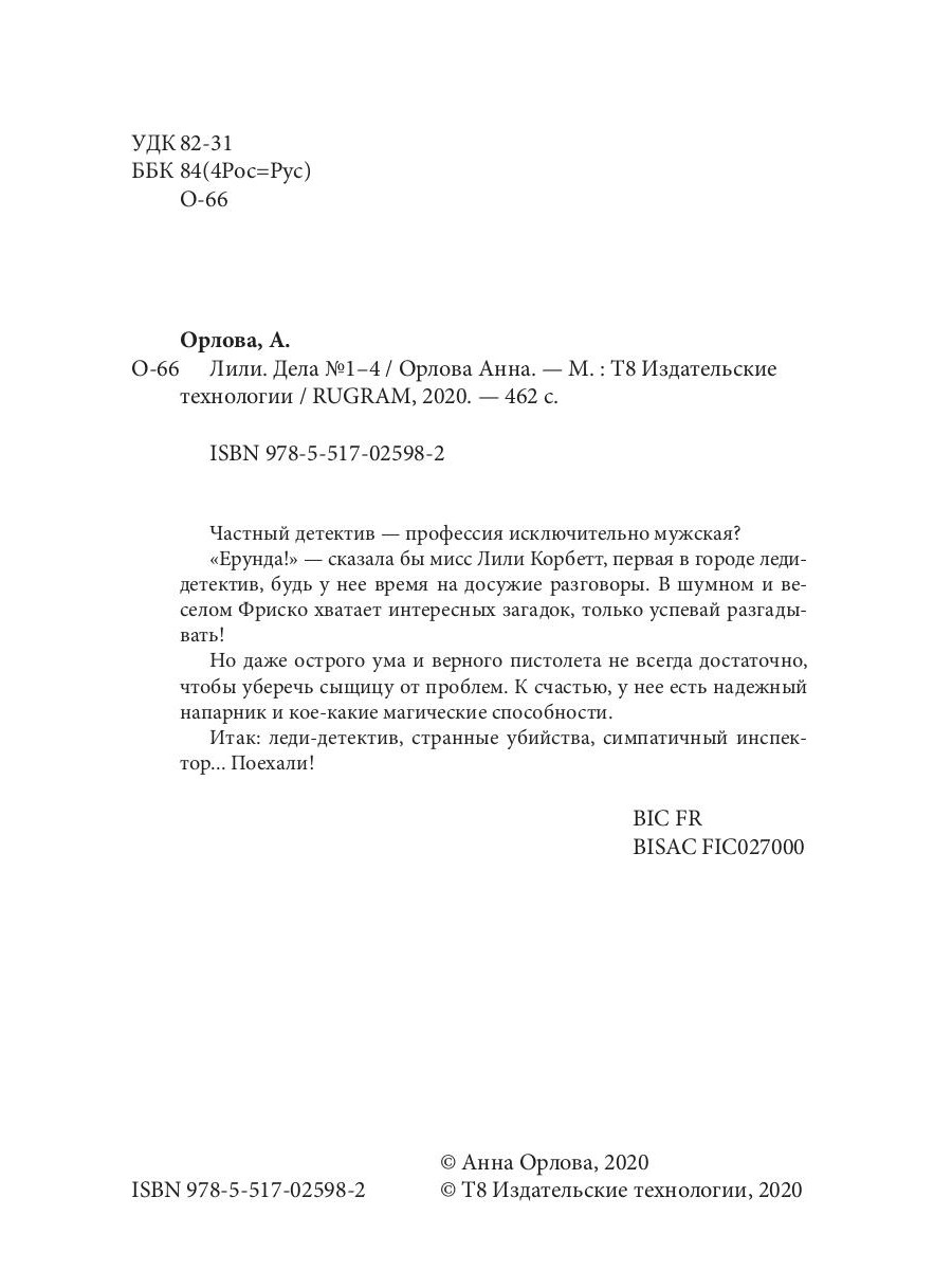 «Ерунда!» - сказала бы мисс Лили Корбетт, первая в городе леди-детектив, будь у нее время на досужие разговоры. В шумном и веселом Фриско хватает интересных загадок, только успевай разгадывать!
