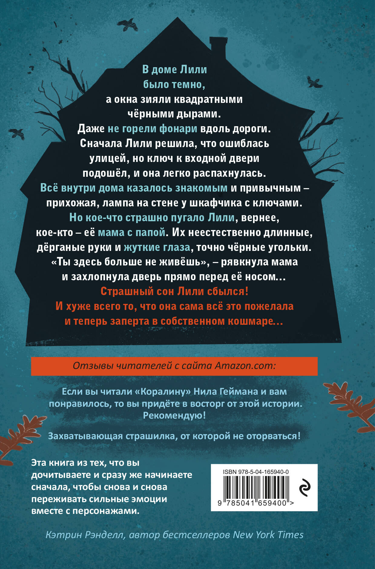 В доме Лили было темно, а окна зияли квадратными чёрными дырами. Даже не горели фонари вдоль дороги. Сначала Лили решила, что ошиблась улицей, но ключ к входной двери подошёл, и она легко распахнулась. Всё внутри дома казалось девочке знакомым и привычным - прихожая, лампа на стене у шкафчика с ключами. Но кое-что страшно пугало Лили, вернее, кое-кто - её мама с папой. Их неестественно длинные, дёрганые руки и жуткие глаза, точно чёрные угольки. А их голоса звучали так, будто они ненастоящие. "Ты здесь больше не живёшь!" - рявкнула мама и захлопнула дверь… Самый страшный сон Лили сбылся! И хуже всего то, что она сама всего этого пожелала и теперь заперта в собственном кошмаре…