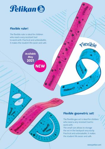 3 daļu elastīgās ģeometrijas komplektā ir šāds saturs: 1 lineāls 20 cm, trīsstūris, 1 transportieri. Ērts izmērs ideāli piemērots bērniem, kuriem nepieciešams ļoti izturīgs darba instruments. Praktiski nesalaužami, tie atvieglo skolas ikdienu. Komplekti ir pieejami zilā un rozā krāsā