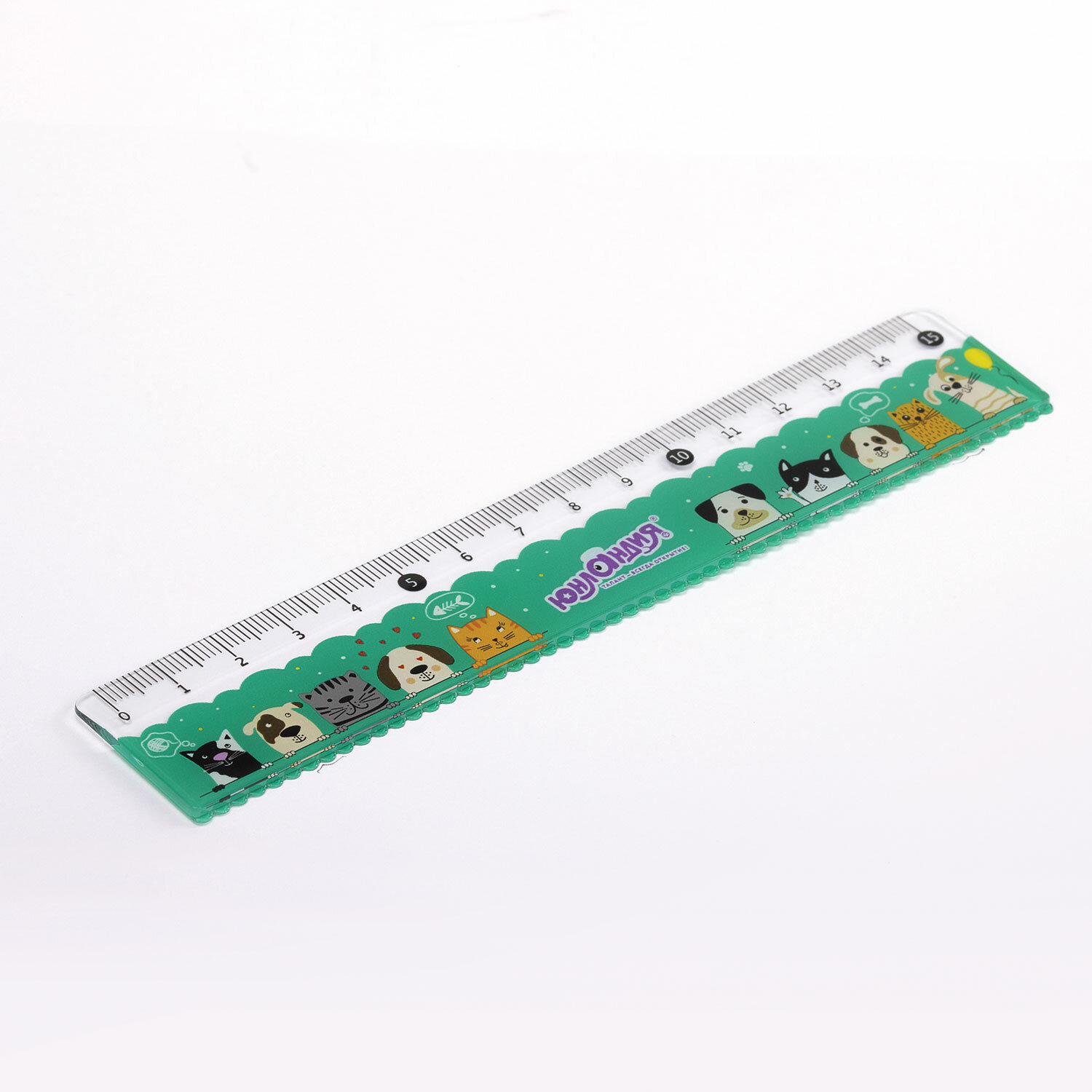 Линейка пластиковая Юнландия "Питомцы", 15 см, цветная печать, с волнистым краем