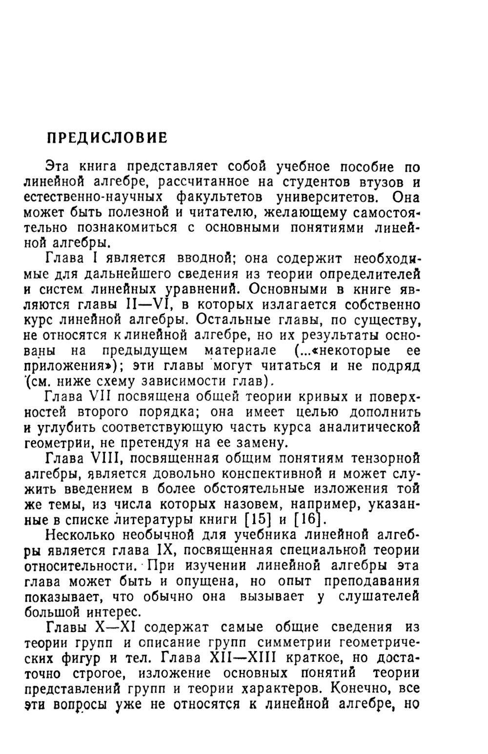 Основное содержание книги составляют теория определителей и краткий курс собственно линейной алгебры. В качестве «приложений» линейной алгебры рассматриваются самые разные вопросы: дается краткое изложение общей теории кривых и поверхностей второго порядка, вводятся основные понятия тензорной алгебры, излагаются основные понятия теории групп и элементы теории представлений групп. В одной из глав книги методы линейной алгебры применяются к основным понятиям физики - принципам относительности, классическому и релятивистскому. Книга предназначена для студентов высших технических учебных заведений и естественно-научных факультетов университетов, преподавателей, инженеров, научных работников, а также читателей, желающих самостоятельно познакомиться с основными понятиями линейной алгебры.| Издательство | ЛЕНАНД |
