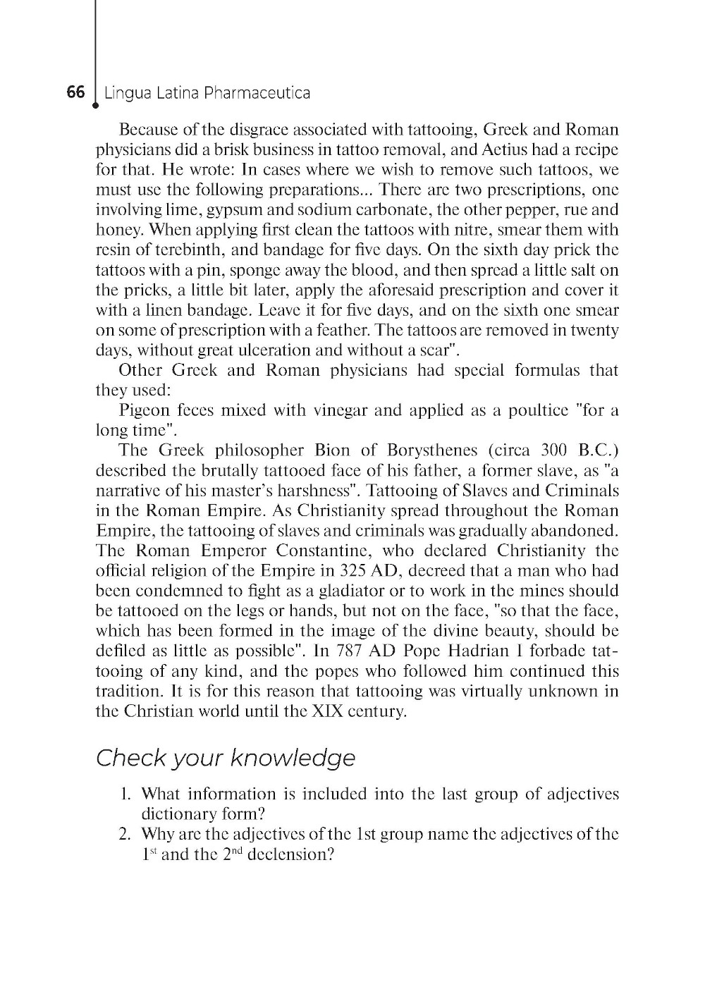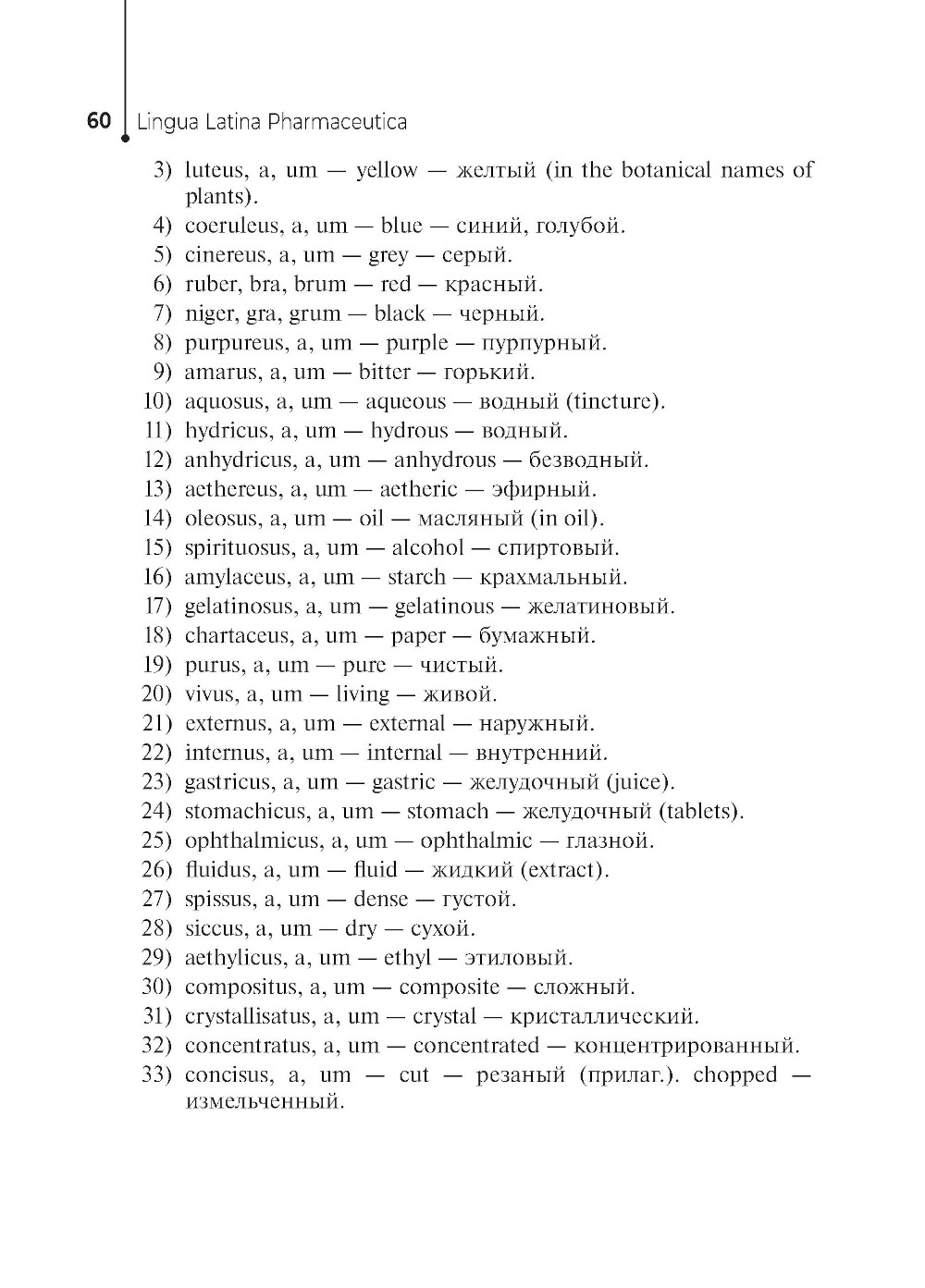 This tutorial guide has been developed in accordance with the Federal State Educational Standard of Higher Education and the program for the Latin Language course. The present guide is designed for use both in the classroom and extracurricular activities. It is recommended for full-time English speaking students of pharmaceutical universities. The tutorial guide explains the principles underlying the formation of pharmaceutical terminology in Latin, as well as methods of its translation into English and Russian. It also presents the most common stems used in nonproprietary drug names, as well as the principles involved in the formation and translation of professional pharmaceutical terms. The book includes extensive extralinguistic information.| Издательство | ГЭОТАР-Медиа |
