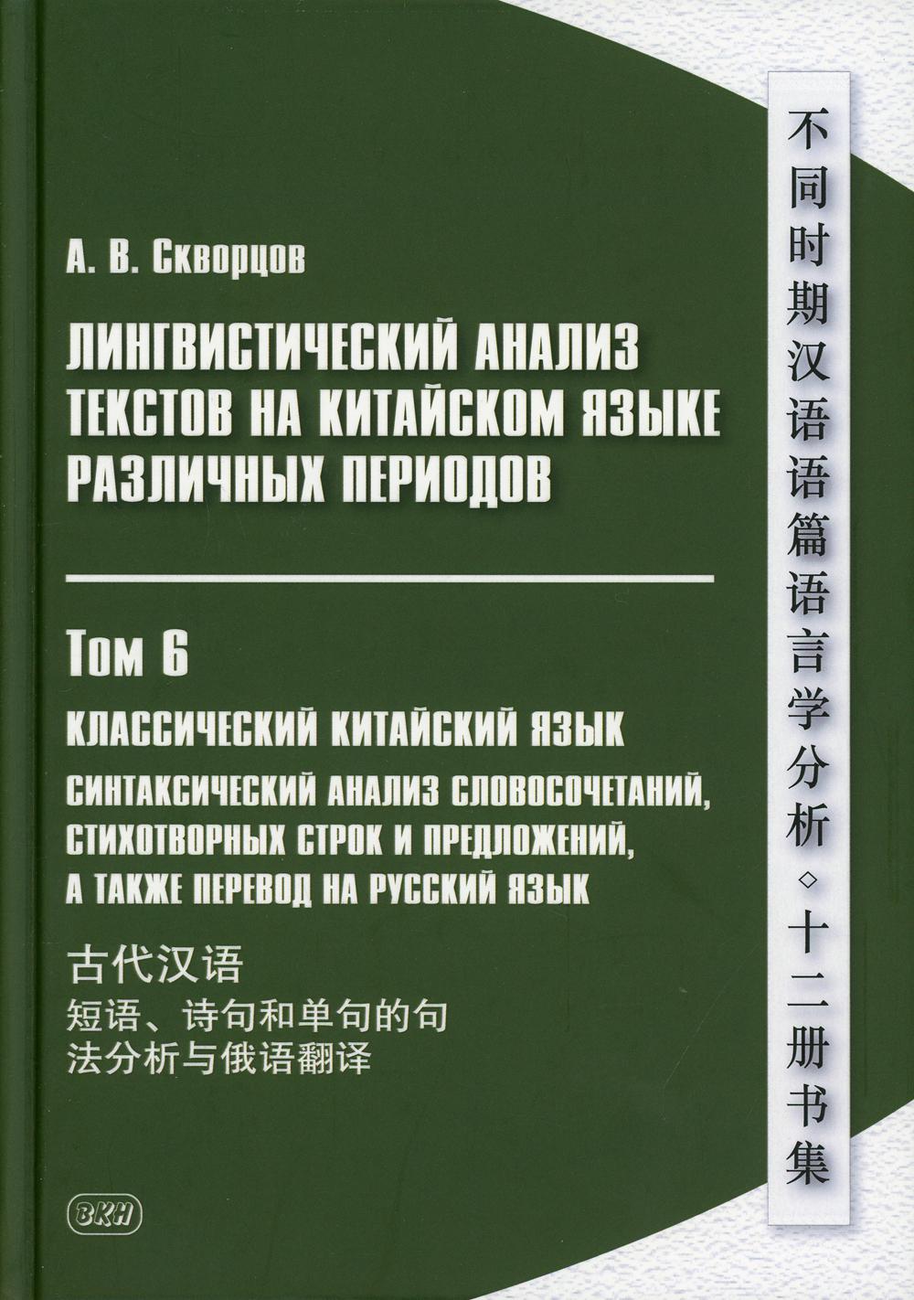 Аннотация: Лингвистический анализ текстов на китайском языке различных периодов. В 12 т. Т.6: Классический китайский язык: Монография