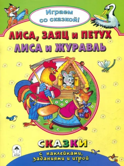 Аннотация: Лиса, заяц и петух. Лиса и журавль. Сказки с наклейками, заданиями и игрой