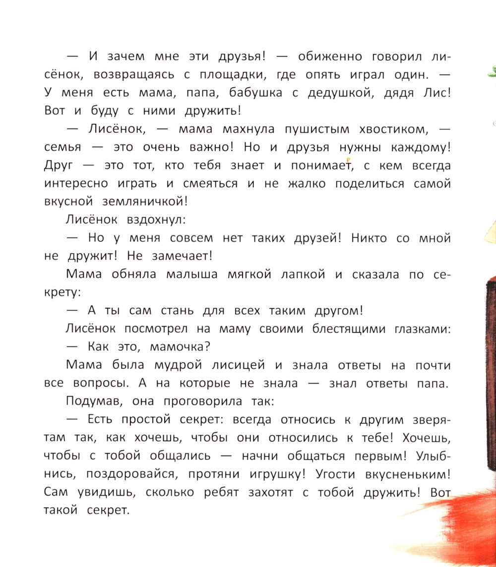 Что делать, если ты стеснительный лисёнок и боишься познакомиться с другими зверятами? Что, если тебя не замечают и играют без тебя? Как научиться дружбе? Мама лисица открыла лисёнку важные секреты, которые помогли ему завести много друзей и стать любимцем всего леса! А мы заботливо поместили эти советы в нашу яркую и добрую книжку.| Издательство | Феникс |