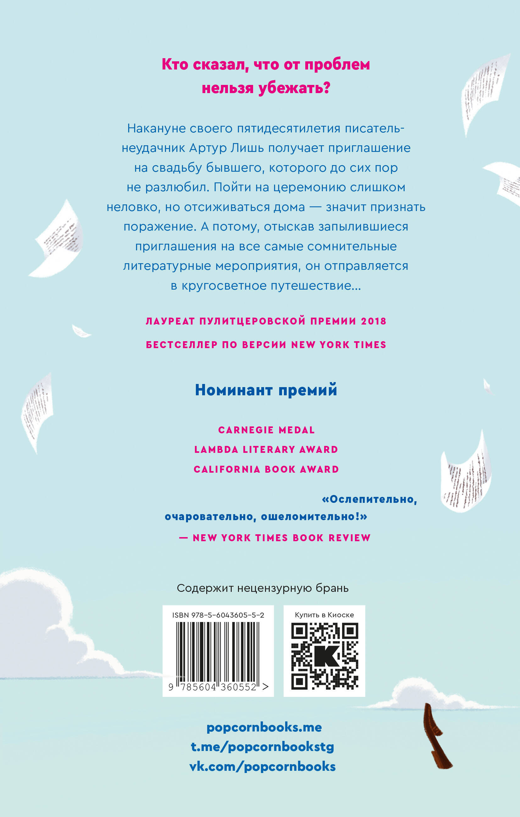 Кто сказал, что от проблем нельзя убежать? Накануне своего пятидесятилетия писатель-неудачник Артур Лишь получает приглашение на свадьбу бывшего, которого до сих пор не разлюбил. Пойти на церемонию слишком неловко, но отсиживаться дома - значит, признать поражение. А потому, отыскав запылившиеся приглашения на все самые сомнительные литературные мероприятия, он отправляется в кругосветное путешествие…| Издательство | ИНДИВИДУУМ ПРИНТ ООО |