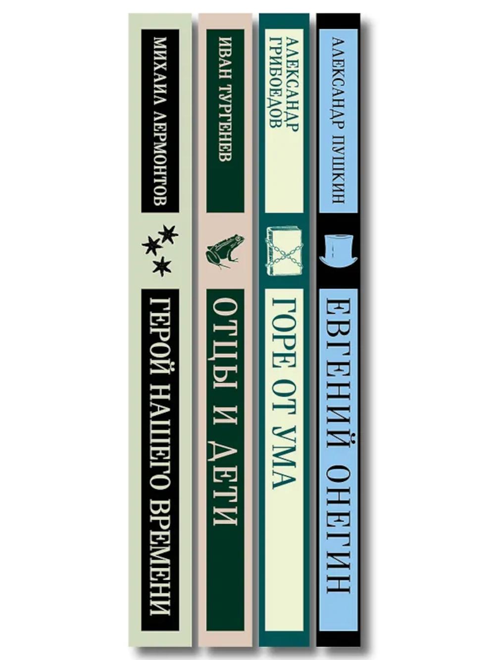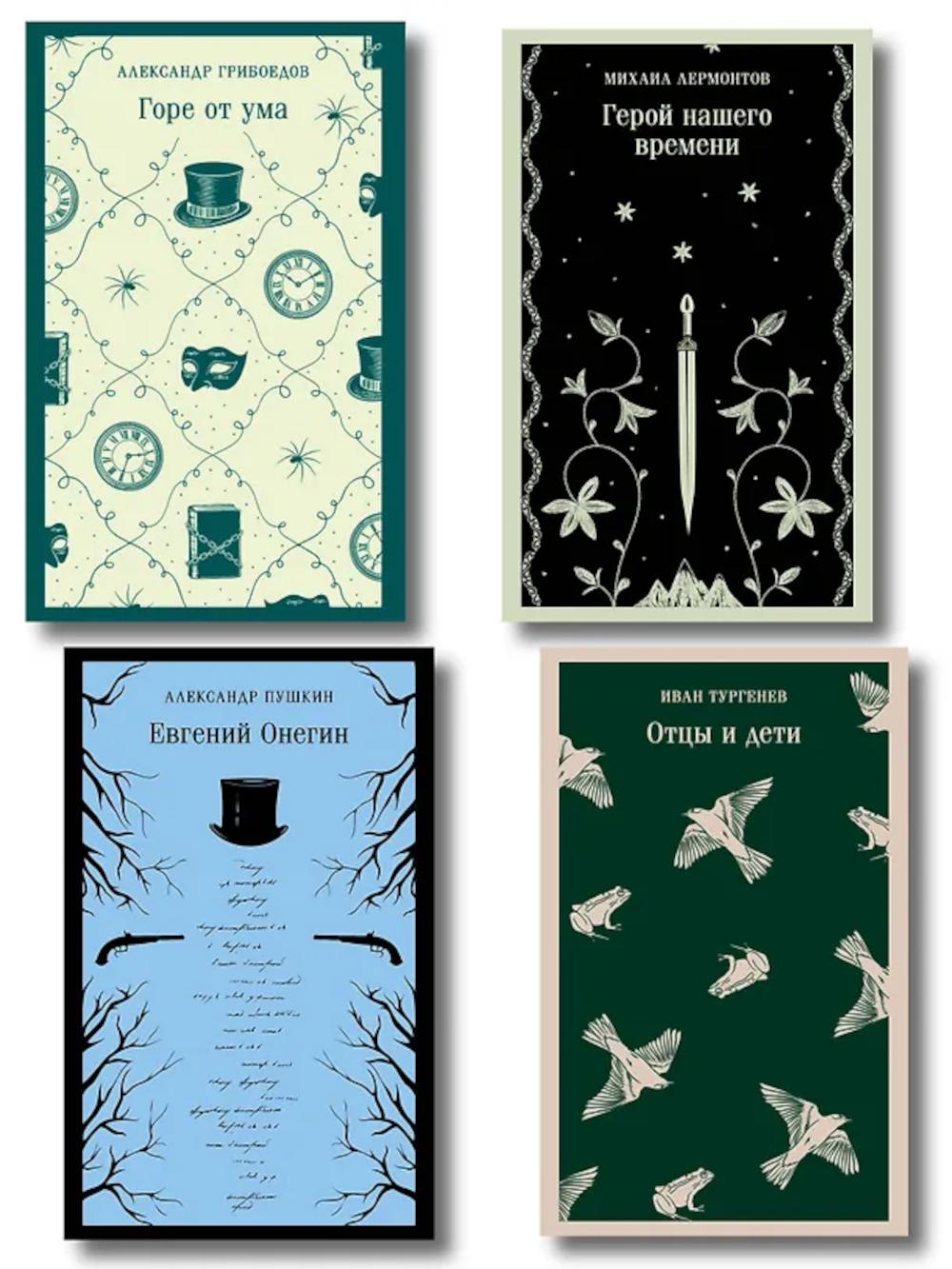 НАБОР ИЗ 4-Х КНИГ В СЕРИИ «МАГИСТРАЛЬ. ГЛАВНЫЙ ТРЕНД»: - «Горе от ума» А.С. Грибоедова; - «Евгений Онегин» А.С. Пушкина; - «Герой нашего времени» М.Ю. Лермонтова; - «Отцы и дети» И.С. Тургенева. «Горе от ума» Молодой дворянин Александр Чацкий возвращается из-за границы к своей возлюбленной Софье Фамусовой. Столичное общество разочаровывает героя, в каждом человеке он видит пороки: глупость, жадность, невежество. Остроумные монологи Чацкого разлетаются на цитаты («Служить бы рад, прислуживаться тошно!» ), а любовь к Софье превращается в горькое разочарование. Но кто здесь действительно безумец - идеалист Чацкий или общество, живущее по законам лжи и чинопочитания? В книгу вошли и другие пьесы Александра Грибоедова (1795-1829): «Молодые супруги», «Студент», «Притворная неверность», а также критическая статья Ивана Гончарова «Мильон терзаний». «Евгений Онегин» Культовый роман в стихах «Евгений Онегин» - это энциклопедия пушкинской эпохи, наполненная фразеологизмами, цитатами, намеками и аллюзиями, выискивать которые - настоящее удовольствие для читателя. Главный герой - щеголь и повеса, которому к двадцати шести годам успевают наскучить шумные балы и городская суета, получает в наследство от покойного дяди поместье и состояние и поселяется в деревенской глуши. Здесь он мгновенно становится предметом для сплетен и пересудов. А его высокомерие больно ранит влюбленную в него Татьяну Ларину. «Герой нашего времени» Русский классик Михаил Юрьевич Лермонтов продолжает тему лишнего человека, начатую еще Пушкиным. Харизматичный красавец Григорий Печорин разочарован в жизни. Светская жизнь развратила его, удовольствия от простых человеческих радостей уже нет. Герой пытается наполнить свое существование хоть каким-то смыслом. Но от этих попыток страдает его окружение. Любовь к черкешенке Бэле - разрушает ее семью. Вмешательство в жизнь тихой станицы - производит переполох. Нежелание общаться со старым другом - наносит тому тяжелую душевную рану. Всё, чего бы ни коснулся Печорин, оказывается разбитым. Он и сам осознаёт это и страдает еще больше. Прочитав роман, вы увидите, как пороки общества могут разрушать личность человека. Книга снабжена статьей с разбором романа от знаменитого критика Виссариона Белинского (1840 г.). «Отцы и дети» Иван Сергеевич Тургенев (1818-1883) - удивительный, очень русский писатель, чей талант был признан и соотечественниками, и великими европейскими поэтами и прозаиками. «Острый и тонкий наблюдатель, точный до мелочей, он рисует своих героев как поэт и живописец. Ему одинаково интересны как их страсти, так и черты их лица… С большим искусством живописует он физическую и моральную сторону явлений, создавая реальные картины действительности…» - написал Проспер Мериме, автор «Кармен». Эта книга представляет важнейшие грани творчества И. С. Тургенева. В нее включены роман «Отцы и дети», повести и стихотворения в прозе. «Вся моя повесть направлена против дворянства как передового класса. Вглядитесь в лица Николая Петровича, Павла Петровича, Аркадия. Слабость и вялость или ограниченность», - так Тургенев разъясняет замысел своего романа. Причем берет он «именно хороших представителей дворянства», показывая: «Если сливки плохи, что же молоко?» Евгений Базаров - главный герой, нигилист и разночинец, выступающий против как либерал