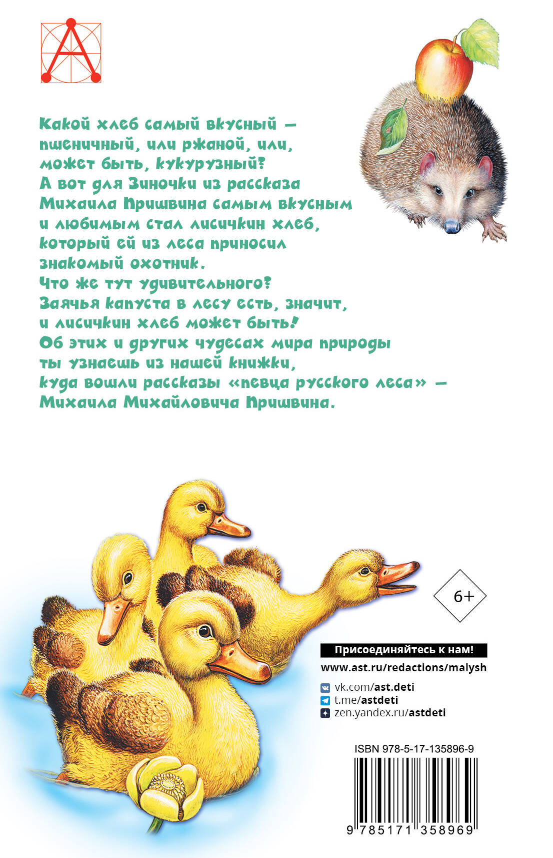 Какой хлеб самый вкусный - пшеничный, или ржаной, или, может быть, кукурузный? А вот для Зиночки из рассказа Михаила Пришвина самым вкусным и любимым стал лисичкин хлеб, который ей из леса приносил знакомый охотник. Что же тут удивительного? Заячья капуста в лесу есть, значит, и лисичкин хлеб может быть! Об этих и других чудесах мира природы ты узнаешь из нашей книжки, куда вошли рассказы «певца русского леса» - Михаила Михайловича Пришвина.| Издательство | ИЗДАТЕЛЬСТВО "АСТ" |