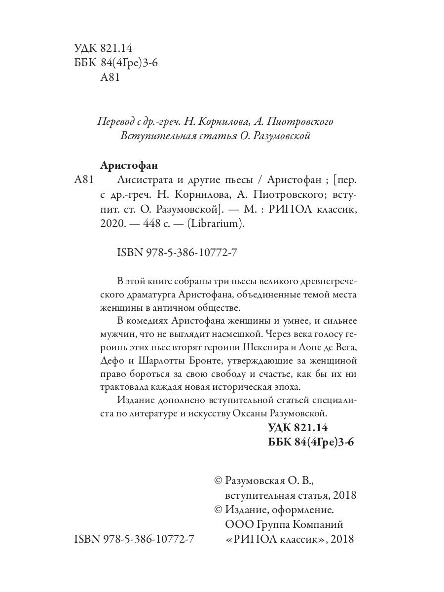 Аннотация: Лисистрата и другие пьесы