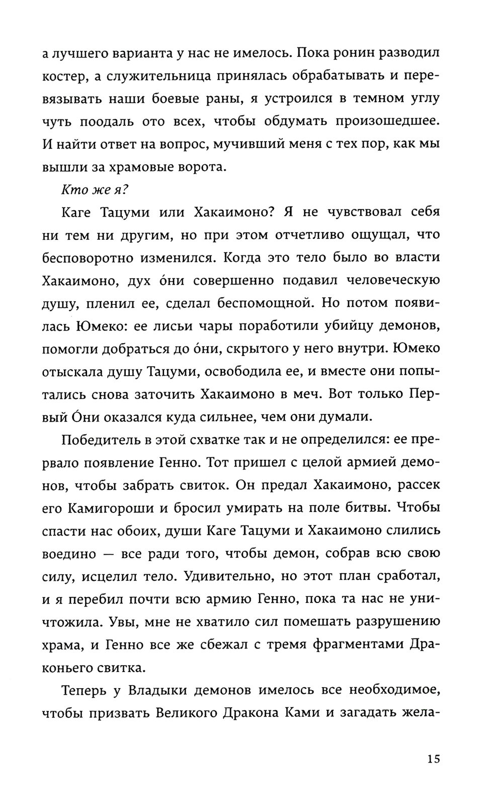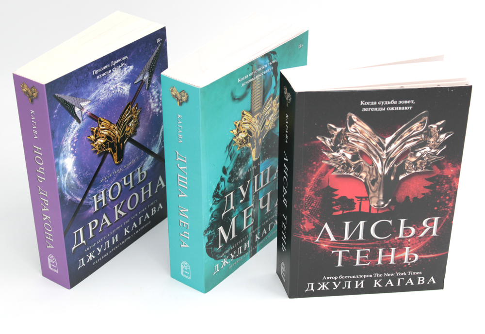 Комплект состоит из трех книг Д. Кагавы: «Лисья тень», «Душа меча» и «Ночь дракона». О книге «Лисья тень»: Раз в тысячу лет Великий Дракон является смертному, чтобы исполнить его самое заветное желание. Раз в тысячу лет мир ждет перемены - к добру или к худу, решать тому, у кого в руках Свиток тысячи молитв. Воспитанная монахами в далеком храме Тихих Ветров, Юмеко всю жизнь училась тому, как скрывать свою сущность ёкая. Наполовину кицунэ, наполовину человек, свой талант по сотворению иллюзий она использует только для мелких проделок. Но когда на храм нападают полчища демонов, Юмеко вынуждена отправиться в опасное путешествие, чтобы защитить фрагмент древнего свитка. Только она не единственная, кому нужна эта драгоценная реликвия. Каге Тацуми, загадочный самурай Клана Тени, тоже охотится за свитком. И он пойдет на все, лишь бы его найти. О книге «Душа меча»: Тысячу лет назад смертный воин из Клана Тени, снедаемый жаждой мести, загадал желание Великому Дракону, Предвестнику Перемен. Так появился меч Камигороши, убийца богов, который заточил в себе могущественного демона Хакаимоно. Прошла тысяча лет, и Хакаимоно вырвался на свободу. У Хакаимоно одна цель - окончательно избавиться от проклятого меча. Для этого ему нужен Свиток тысячи молитв. И только кицунэ-полукровка Юме-ко стоит у него на пути. У Юмеко одна задача - отнести свою часть Драконьей молитвы в храм Стального Пера, чтобы никто больше не смог призвать Предвестника Перемен. Но Каге Тацуми из Клана Тени, отважный юноша, который должен был сопроводить Юмеко к храму, стал беспомощным пленником Хакаимоно. И Юмеко решительно настроена его спасти, пусть даже для этого ей придется сразиться с сильнейшим из демонов Дзигоку. О книге «Ночь дракона»: Чтобы уберечь от неминуемой гибели всех, кто ей дорог, кицунэ-полукровка Юмеко отдала Генно, Владыке демонов, последний фрагмент Свитка тысячи молитв. Теперь Юмеко и ее спутники должны помешать Генно призвать Дракона. Чтобы спастись от смерти, Каге Тацуми из Клана Тени заключил сделку с демоном Хакаимоно. Вместе они помогут Юмеко остановить Генно, и тогда Хакаимоно наконец избавится от власти проклятого меча, в котором был заточен почти тысячу лет. Но как бы ни были сильны и отважны наши герои, они понимают, что одержать победу над злом почти невозможно. А в битву за Свиток вступает еще один игрок. До сих пор он лишь наблюдал, выжидая подходящего момента, чтобы потянуть за ниточки, о существовании которых никто не подозревал...| Издательство | Popcorn Books |