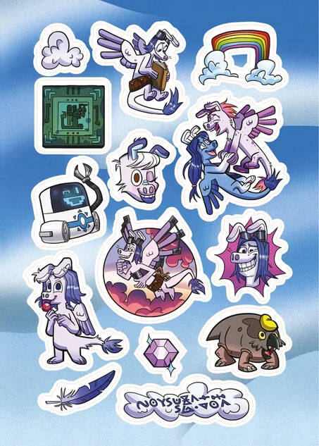 Лист стикеров на виниловой основе с картонной подложкой с персонажами из серии комиксов "Назад Нельзя".| Издательство | Эксмо |