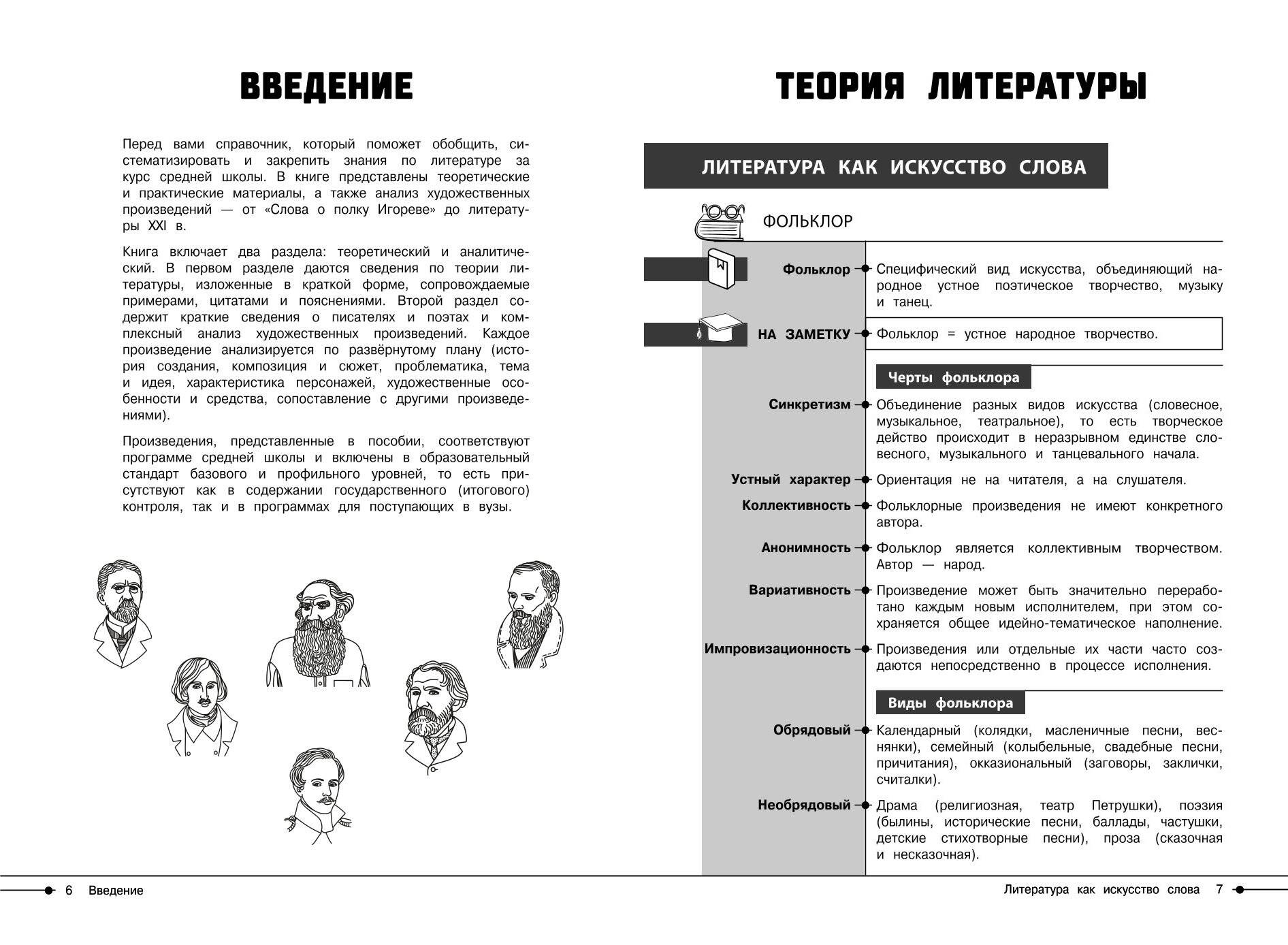 Вы готовитесь к экзаменам, перегружены информацией и не знаете, на что обратить внимание, когда каждая мелочь кажется важной? Вам поможет уникальная книга для школьников с наглядной структурой и активными полями! Она представит материал школьного курса литературы за 5-11 классы в доступном изложении, а особый макет издания выделит главное и структурирует информацию для наилучшего запоминания. Активные поля обеспечат быстрый и точный поиск информации, сохраняя ваше время и увеличивая продуктивность. В справочнике вы найдете сведения по теории литературы с цитатами и пояснениями, справки о писателях и поэтах, а также комплексный анализ художественных произведений. Теоретические блоки охватывают период от «Слова о полку Игореве» до литературы ХХI в. и сопровождаются примерами, схемами и таблицами для комплексной подготовки к ОГЭ и ЕГЭ по литературе. Пособие создано для старшеклассников, которые ценят качество, удобство, а также эффективность в ходе учебного процесса. Помимо этого, оно будет полезно и абитуриентам при поступлении в вузы, и учителям при проведении занятий и экзаменов.| Издательство | ООО "Издательство "Эксмо" |