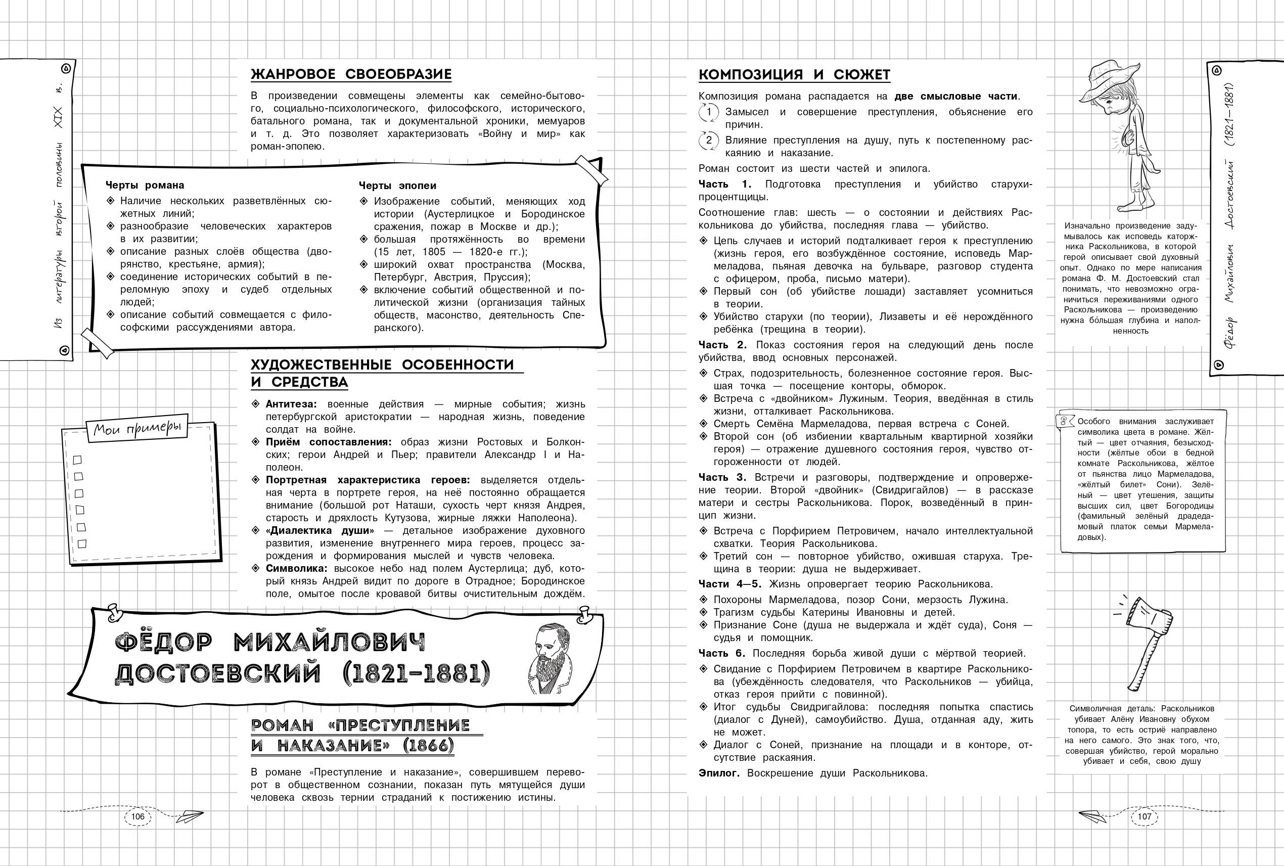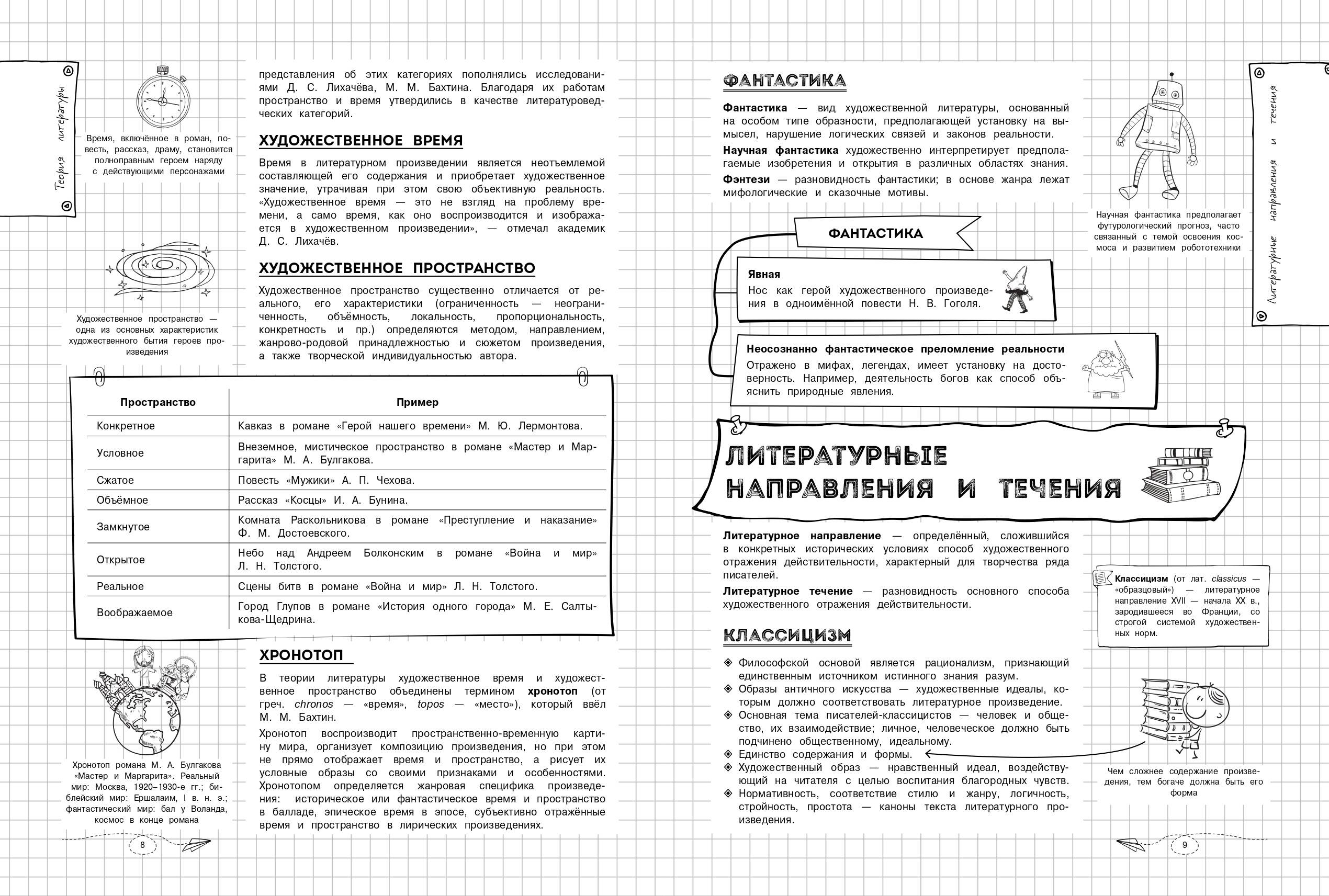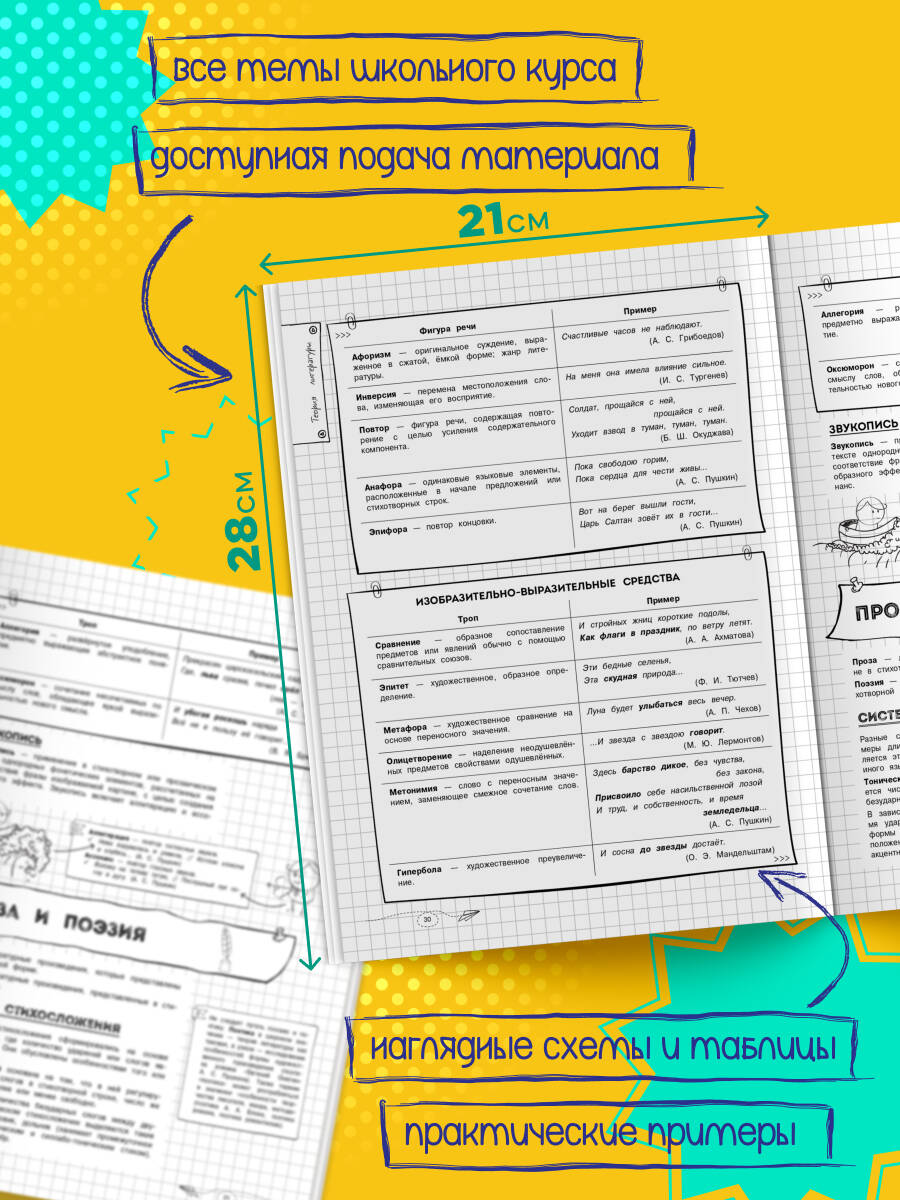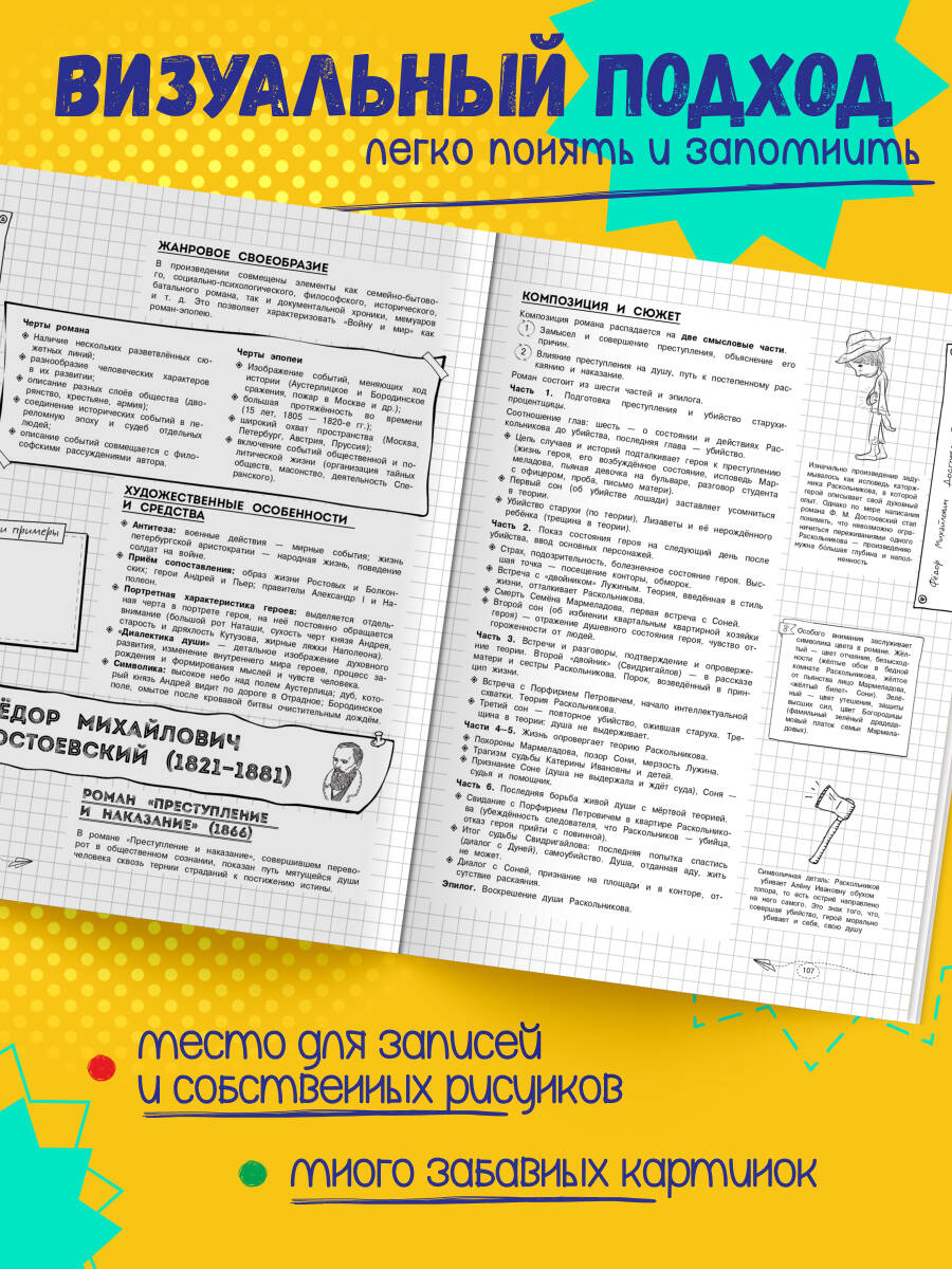 Справочник по литературе в наглядных конспектах для учеников 5, 6, 7, 8, 9, 10 и 11 классов превращает изучение каждой темы в увлекательное и познавательное приключение! Книга поможет запоминать и повторять материал на протяжении всего школьного курса. Благодаря наглядной подаче теории с примерами, схемами, а также забавными рисунками, текст становится доступным и интересным. Визуальный подход обеспечивает легкость восприятия и запоминания информации, ведь она оформлена в виде конспектов, словно ученик писал их сам. Всевозможные иллюстрации и места для собственных примеров и примечаний помогут сделать процесс обучения максимально простым и приятным! А при желании можно взять маркеры и сделать свой конспект еще более уникальным и персонализированным! • Все темы школьного курса. • Доступная подача материала. • Практические примеры. • Наглядные схемы и таблицы. • Множество забавных картинок. • Место для ваших записей и собственных рисунков. Погрузитесь в увлекательный мир литературы вместе с наглядным справочником для подростков и почувствуйте, как знания становятся ближе, а учеба лучше! Книжка поможет подготовиться к ОГЭ, ЕГЭ и другим экзаменам 2026. Также пособие будет полезно для занятий родителей с детьми.| Издательство | ООО "Издательство "Эксмо" |