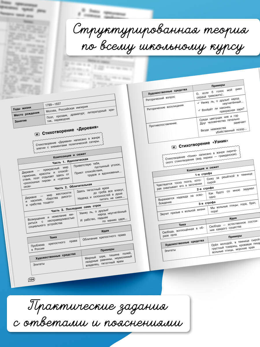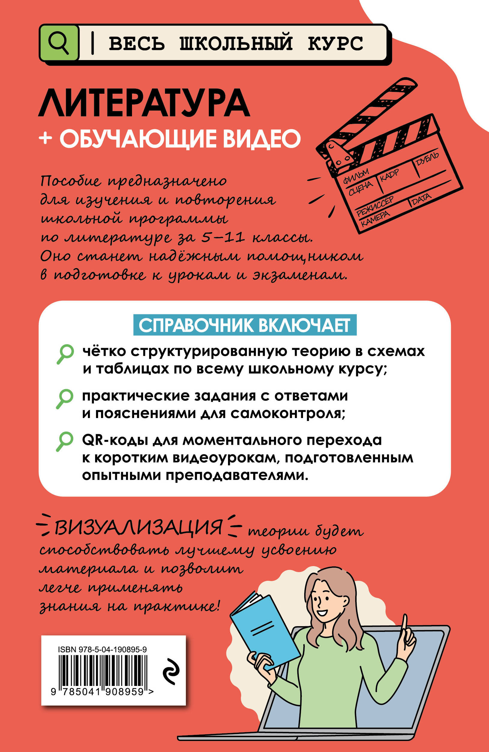 Хочешь подготовиться к экзаменам, но глаза разбегаются от большого объёма информации в учебниках? Решение этой проблемы буквально в одном QR-коде от тебя: просто наводи, сканируй и смотри короткие видеоуроки, в которых преподаватели наглядно объясняют сложные темы! Ёмкая теория в таблицах в комплекте с обучающими анимационными видео поможет выучить предмет, не прибегая к помощи репетиторов. В книге ты найдёшь: • структурированную теорию по всему школьному курсу литературы; • практические задания с ответами и пояснениями; • QR-коды для быстрого перехода к видеоматериалам. В пособии развёрнутый поясняющий материал по темам, особо актуальным для сдачи экзаменов, ОГЭ и ЕГЭ 2026, представлен в формате коротких видеороликов. Такой справочник для учеников 5, 6, 7, 8, 9, 10, 11 классов сделает процесс обучения живым и запоминающимся! Попробуй новый подход к обучению: смотри и учись в любое время и в любом месте! Также книжка будет полезна для занятий родителей с детьми.| Издательство | ООО "Издательство "Эксмо" |
