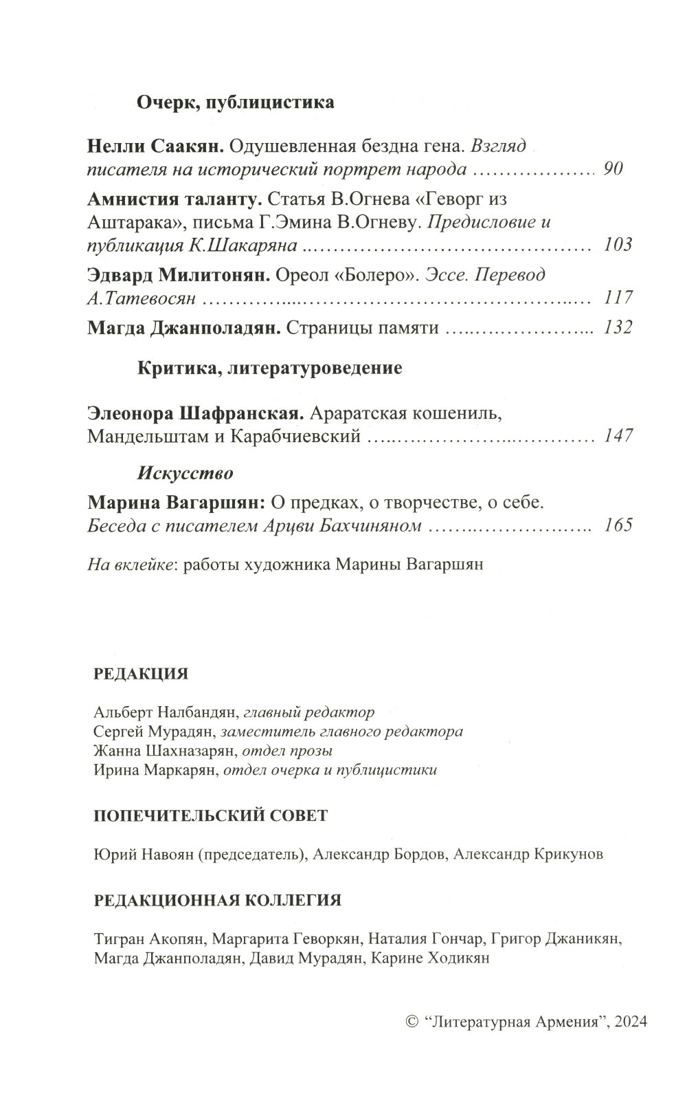 Литературно-художественный общественно-политический журнал, орган Союза писателей Армении. Журнал основан в декабре 1958 года. Издается при содействии Министерства образования, науки, культуры и спорта Республики Армения и организации «Диалог»| Издательство | Литературная Армения |