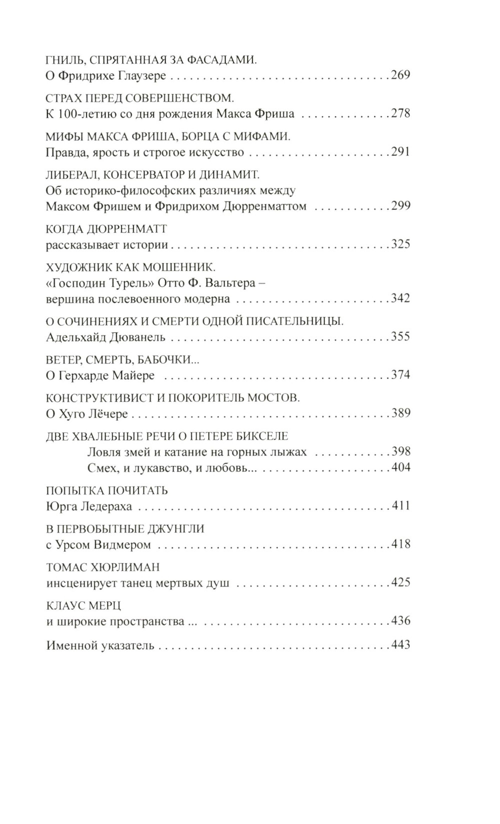 В книге собраны эссе швейцарского литературоведа Петера фон Матта, представляющие путь, в первую очередь, немецкоязычной литературы альпийской страны в контексте истории. Отдельные статьи посвящены писателям Швейцарии - от Иеремии Готхельфа и Готфрида Келлера, Иоганна Каспара Лафатера и Роберта Вальзера до Фридриха Дюрренматта и Макса Фриша, Адельхайд Дюванель и Отто Ф. Вальтера.| Издательство | Центр книги Рудомино |