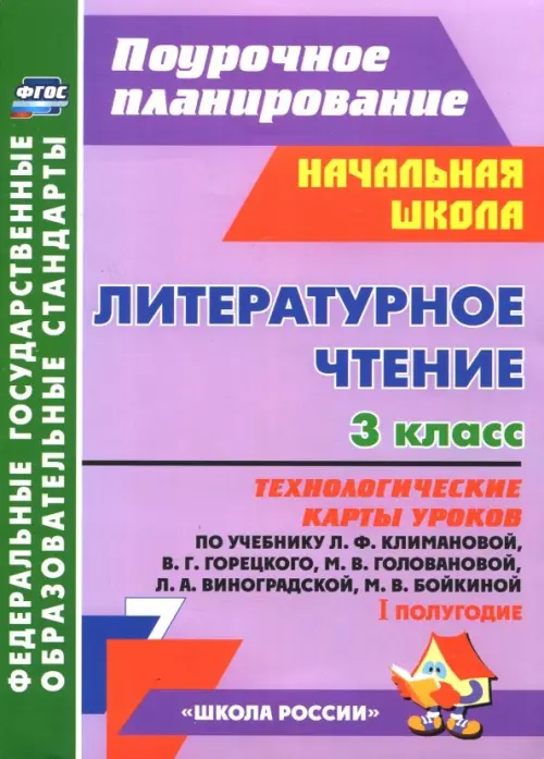 В пособии представлены технологические карты уроков по литературному чтению для 3 класса, разработанные в соответствии с ФГОС НОО, Примерной образовательной программой ОУ, а также с учетом планируемых результатов начального общего образования и ориентированные на работу по учебнику Л.Ф. Климановой, В.Г. Горецкого, М.В. Головановой, Л.А. Виноградской, М.В. Бойкиной (М.: Просвещение, 2013), входящему в УМК "Школа России".