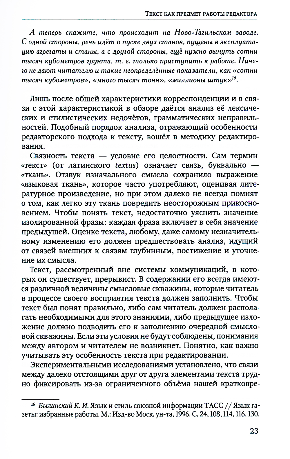 Учебник по литературному редактированию обобщает опыт практических занятий со студентами и лекций, прочитанных автором на факультете журналистики МГУ имени М.В.Ломоносова. Цель книги - помочь осмыслить редакторскую работу над текстом с позиций современных филологических представлений и практических задач редактора средств массовой информации. Для преподавателей и студентов факультетов журналистики, редакторов материалов массовой информации, журналистов-практиков.| Издательство | МГУ им.Ломоносова |