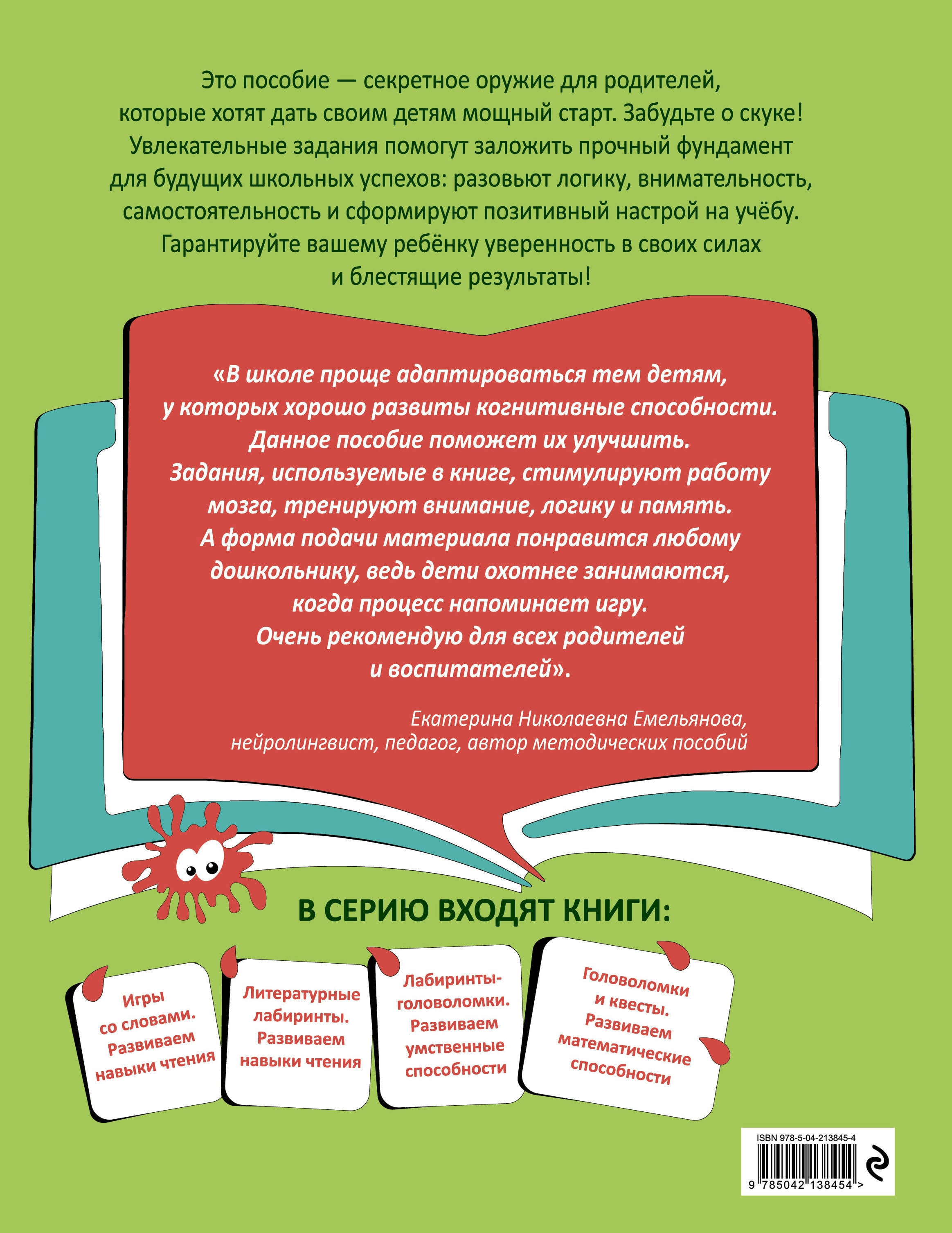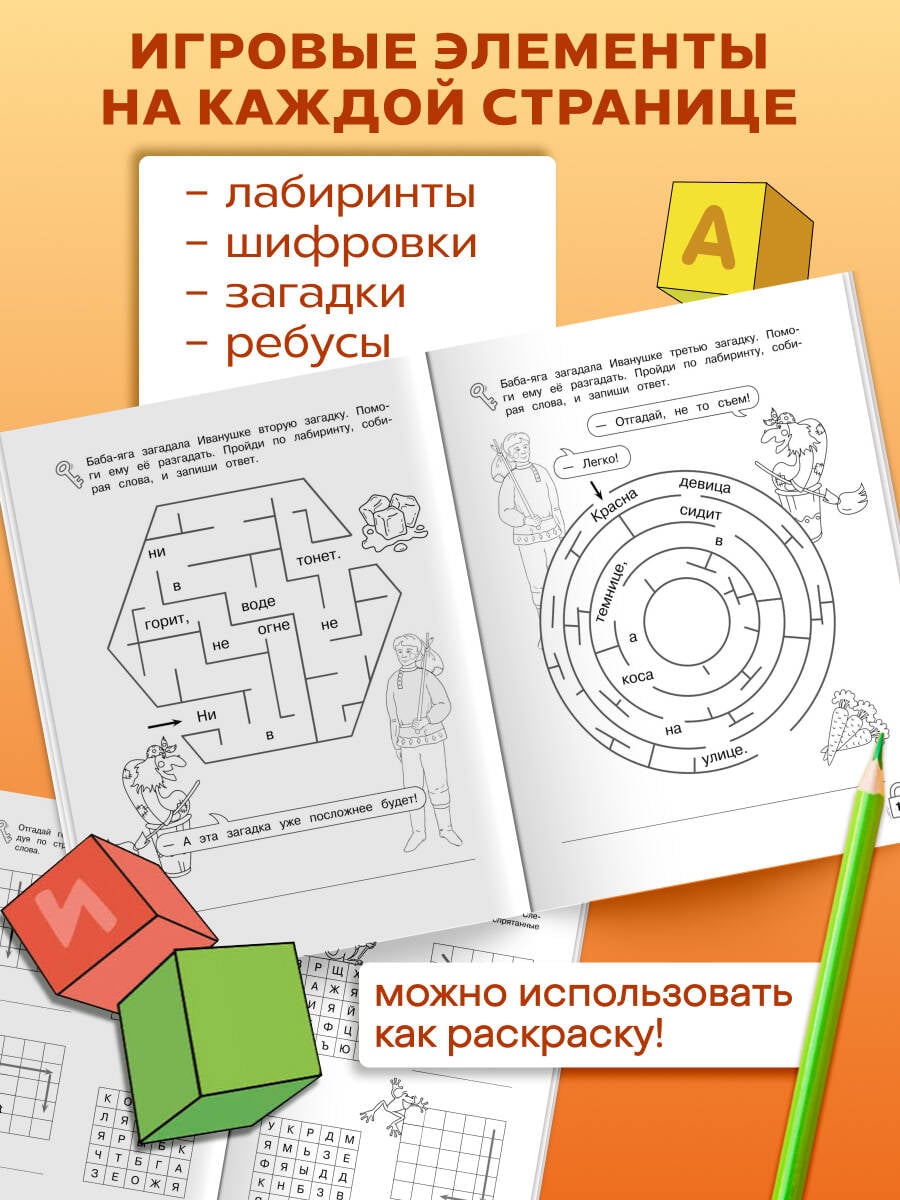 Учимся читать вместе с развивающими книгами для детей от издательства «Эксмо»! Интерактивная рабочая тетрадь, разработанная практикующим нейропсихологом, поможет активизировать умственные способности и превратит обучение в увлекательное литературное путешествие. Занимаясь, дошкольник будет встречать любимых литературных героев и знакомиться с другими сказочными персонажами, которым понадобится его помощь. На каждой странице ребёнку предстоит проходить лабиринты, собирая по пути буквы и слова, решать ребусы, загадки и шифровки. Упражнения, собранные в книге, помогут развить точность и целостность зрительного восприятия образа буквы, автоматизировать навыки чтения, повысить внимание и улучшить мелкую моторику и логическое мышление. Книга для обучения чтению, созданная для детей 5, 6, 7 лет, подойдет для использования дома и в детском саду. Ее можно брать с собой в дорогу, чтобы занять ребенка полезным делом, использовать как раскраску и самое главное в качестве подготовки к школе. Эта увлекательная развивашка станет отличным подарком для любознательных и активных мальчиков и девочек, которые хотят интересно провести время, а заодно освоить первые навыки чтения легко и с удовольствием.| Издательство | ООО "Издательство "Эксмо" |