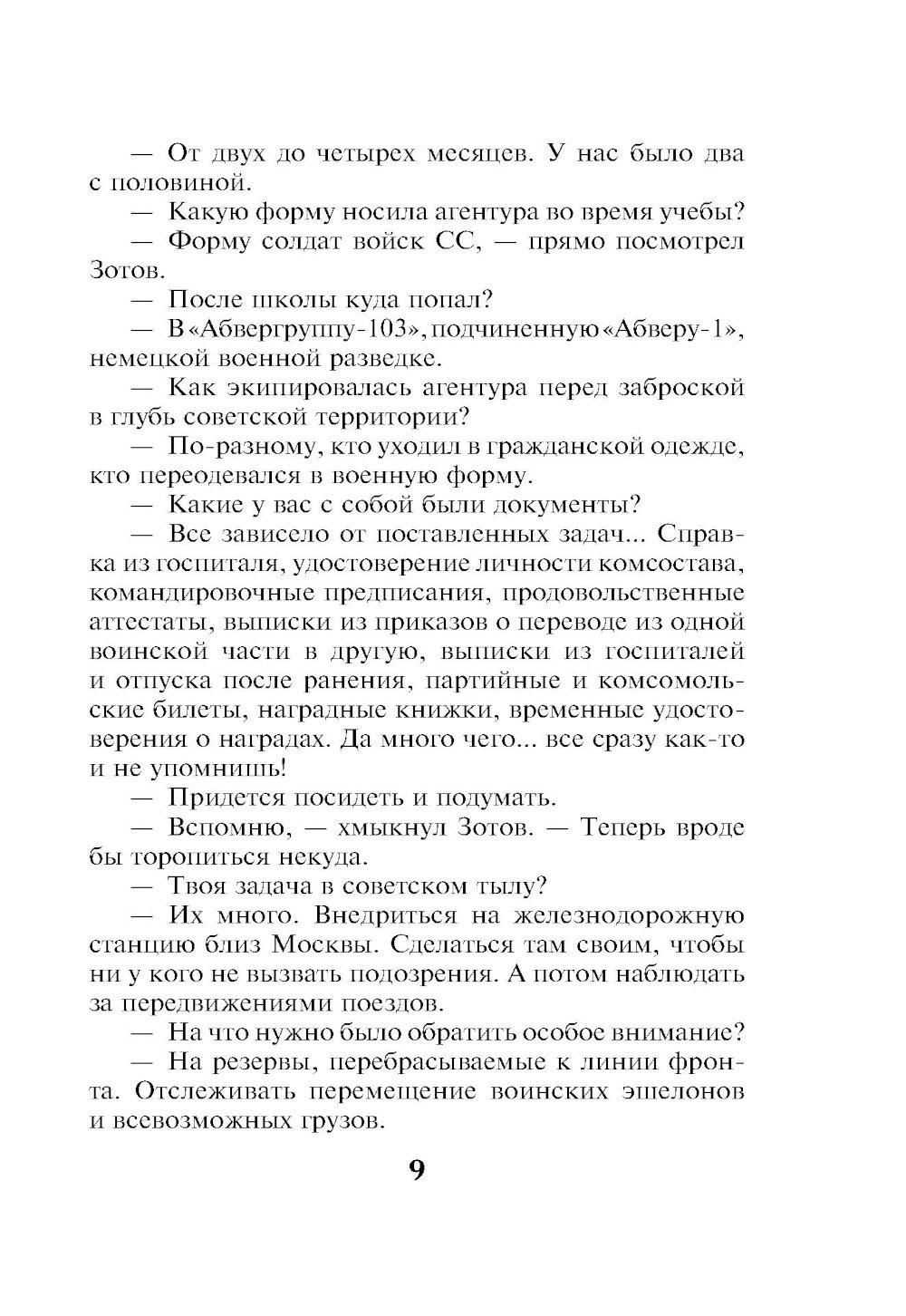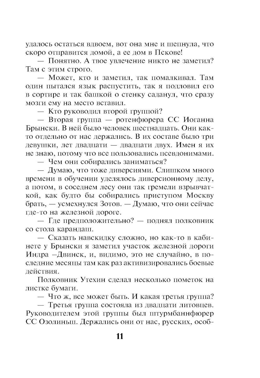 Фашистской разведке становится известно, что в ближайшие дни Сталин посетит Западный фронт. Информация абсолютно достоверная, и операцию по уничтожению генералиссимуса под личный контроль берет фюрер. Вражеская диверсионная группа предателя Свиридова десантируется в расположение советских войск. Диверсанты уже знают, на каком именно поезде поедет Сталин. Кажется, фашистские прихвостни продумали все. Но одного они не учли: СМЕРШ давно идет по их следам и просчитывает каждый их шаг...| Издательство | Эксмо |