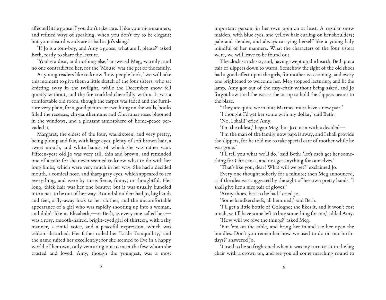 Little Women (Louisa May Alcott) The four March girls live together, as different as sisters as can be. There is sensible, romantic Meg and sweet, sunshiny Beth. There is Jo who burns with the ambition to be a writer and there is Amy who wishes for a more beautiful nose. Simple, true, and keenly resonant with life, spirit and affection, Little Women is a beloved classic for the ages. Маленькие женщины (Луиза Мэй Олкотт) Оригинальный текст, без адаптации Четыре сестры Марч живут вместе, настолько разные, насколько это вообще возможно. Есть разумная, романтичная Мег и милая, солнечная Бет. Есть Джо, которая горит амбициями стать писательницей, и есть Эми, которая мечтает о более красивом носе. Простая, правдивая и остро созвучная жизни, духу и привязанности, "Маленькие женщины" - любимая классика на века.| Издательство | Penguin Books Ltd |