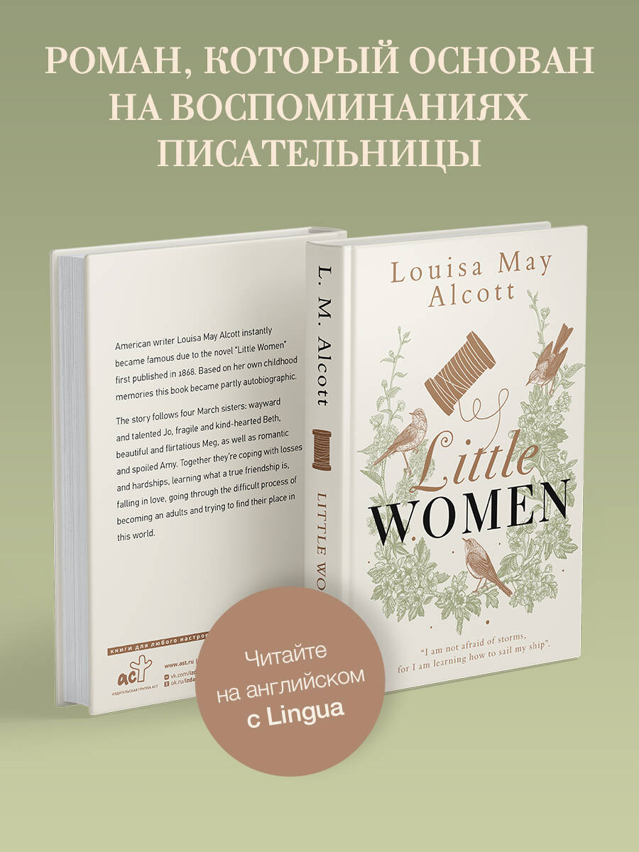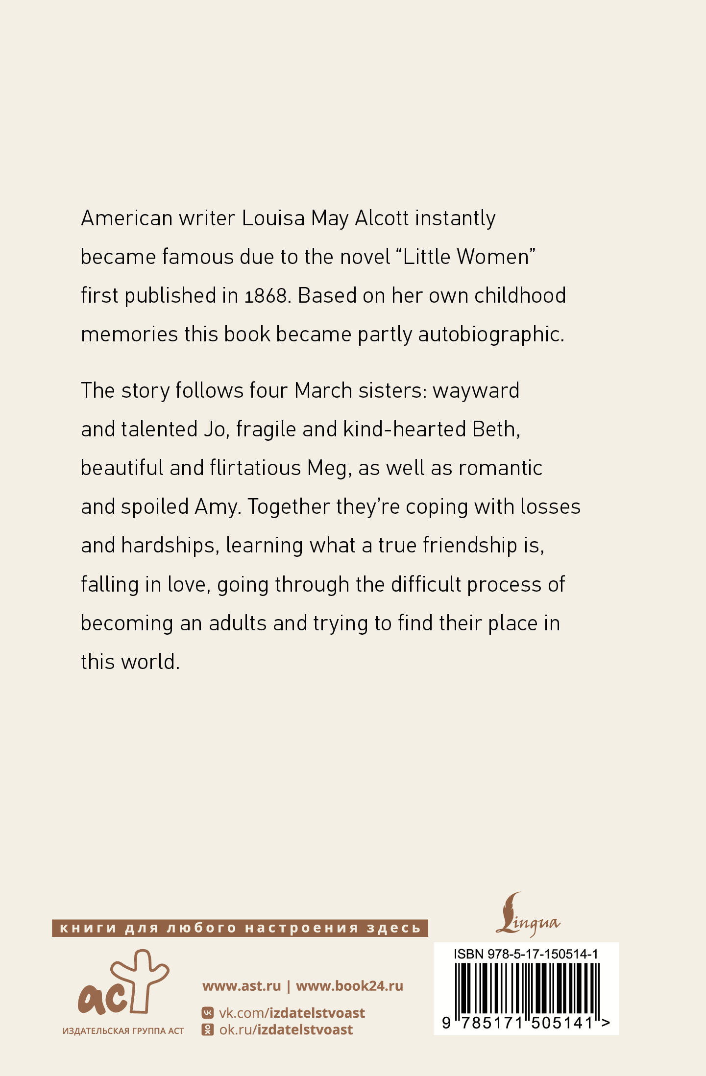 Американская писательница Луиза Мэй Олкотт в одночасье стала знаменитой благодаря роману "Маленькие женщины", в основу которого легли ее собственные детские воспоминания, что сделало произведение частично автобиографическим. История повествует о четырех сестрах Марч: своенравной и талантливой Джо, хрупкой и мягкосердечной Бэт, красивой и кокетливой Мэг, а также романтичной и избалованной Эми. Вместе они справляются с потерями и невзгодами, узнают, что такое настоящая дружба, влюбляются, постигают нелегкую науку взросления и находят свое место в этом мире. Текст произведения дан в оригинале в неизменном виде.| Издательство | ИЗДАТЕЛЬСТВО "АСТ" |