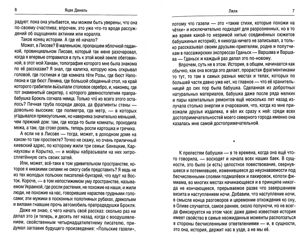Это книга о бабушке. А бабушка - важный человек в нашей жизни. Тот, у кого была бабушка, научается любить жизнь. Какая бы она ни была... Но книга не только об этом... У бабушки есть высшее предназначение. Через любовь к ней человек усваивает любовь к родине, ибо бабушка человека - это и есть его родина. Ляля Бенецкая - счастливейшая из бабушек: Яцек Денель - не просто обожающий её внук, он ещё и талантливый писатель. Поэтому читатель будет вознаграждён. Что такое писательский дар? Умение видеть жизнь как литературу, а человека - как персонаж. Яцек Денель сумел увидеть нечто большее: книга о его бабушке - это книга о РОДИНЕ. Бабушка Ляля рассказывает жизнь, в которой было всё: триумф, катастрофа, возрождение. Это не только её жизнь - это караван удивительных личных историй, из которых и соткана ткань человеческой ИСТОРИИ, истории каждого из нас и мира, в котором мы живём...| Издательство | БММ |